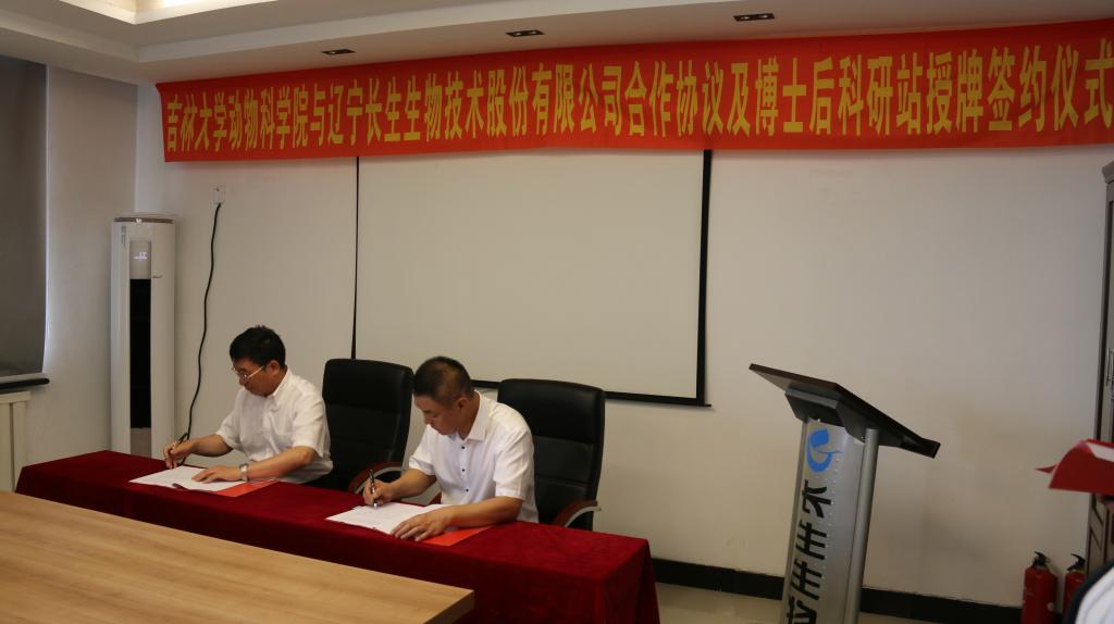 张嘉保院长代表beat365英国官方网站与辽宁长生生物技术有限公司签订了合作协议。学院孙博兴副院长与王全新董事长为“beat365英国官方网站教学实习与社会实践基地”揭牌,张明军副院长与王智琴总经理为“beat365英国官方网站博士后科研工作站”揭牌。这次活动开启了beat365英国官方网站动物生产类专业产教融合协同育人的模式,深入推进了新农科建设步伐。