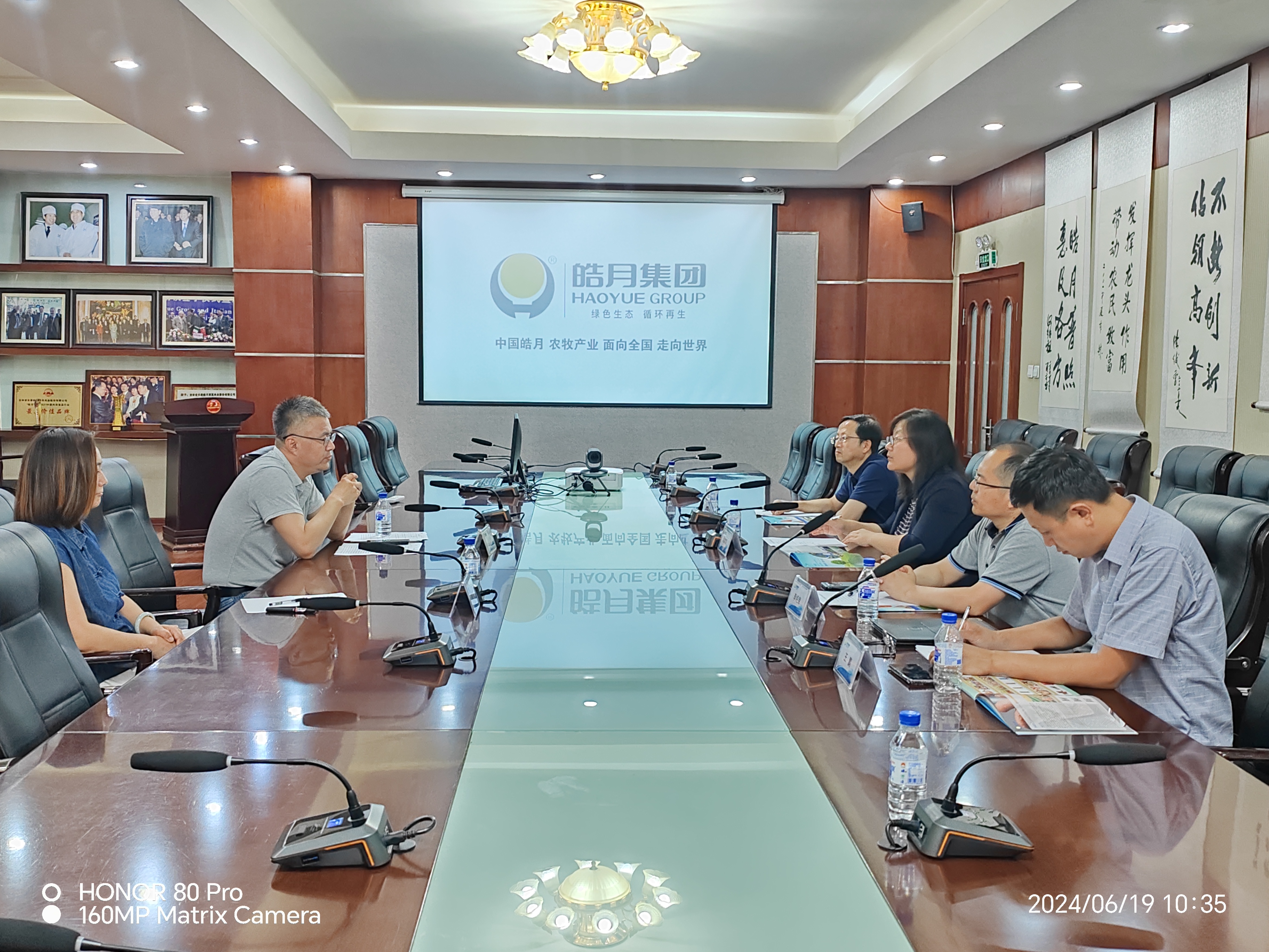 双方针对进一步的校企合作模式进行了座谈交流。人力资源总监刘金辉首先就集团概况、企业薪酬体系、人才需求岗位、职业成长路径和现有校企合作模式进行了介绍。学院副院长李纯锦就多年来皓月集团为学院教学实习和社会实践提供的积极支持表示感谢,从人才培养、师资互派、种业振兴和产学研用的进一步合作等方面介绍了学院情况。党委副书记、《动科与生活》社会实践课程负责人肖建荣结合三年来的课程实践效果进行了反馈,并就实践规范化和内容化建设、职业认知与生涯规划指导、学院毕业生留省就业等进行了探讨交流。学院专业课教师、长春皓月饲料有限公司科创专员金永成,《新生导论课》教师王鹏也分别就产研结合和相关课程教学实习环节进行了说明介绍。
