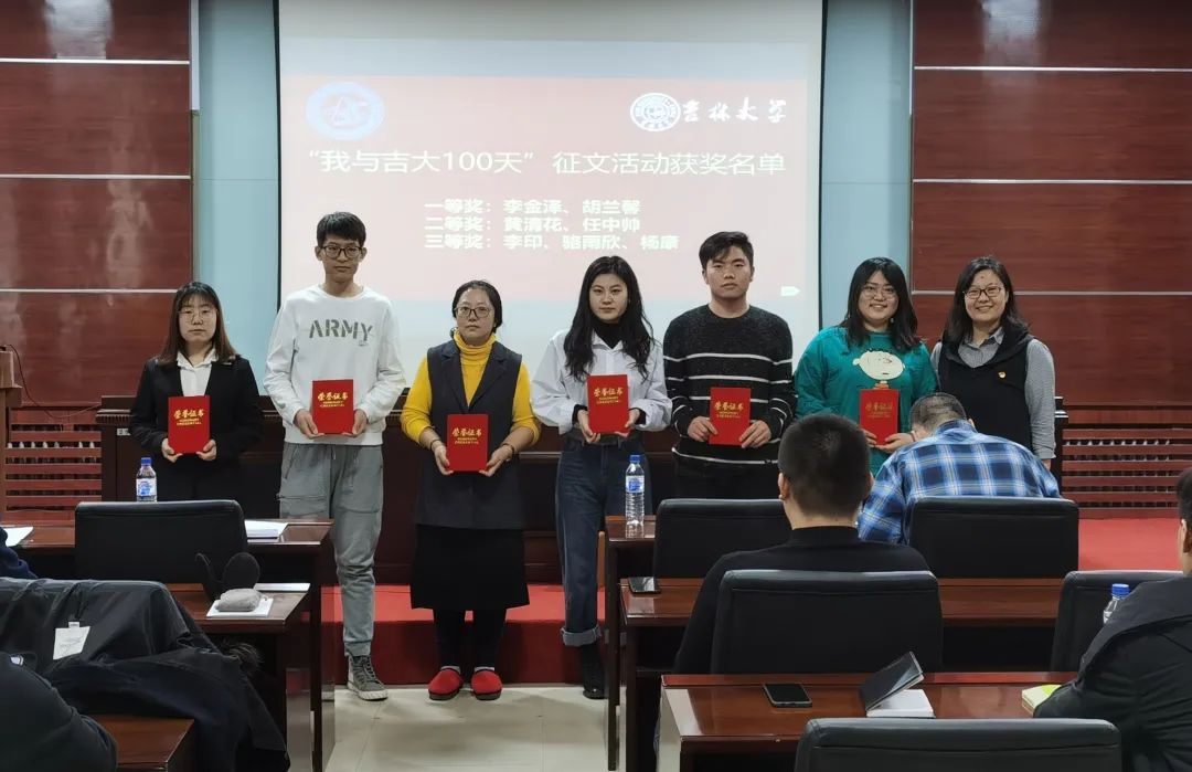 2020年12月25日,beat365英国官方网站举行了研究生会换届大会,表彰了第七届研究生会优秀干部和“我与吉大的一百天”征文获奖人员,向第八届研究生会成员和2020级研究生班委干部颁发了聘书。学院党委副书记曹伟光、团委书记肖建荣、研究生与科研办公室主任文力正、研究生秘书黄育雯和第七届研究生会优秀干部、第八届研究生会成员及2020级全体研究生参加了会议。会议由第八届研究生会执行主席宗金鑫同学主持。