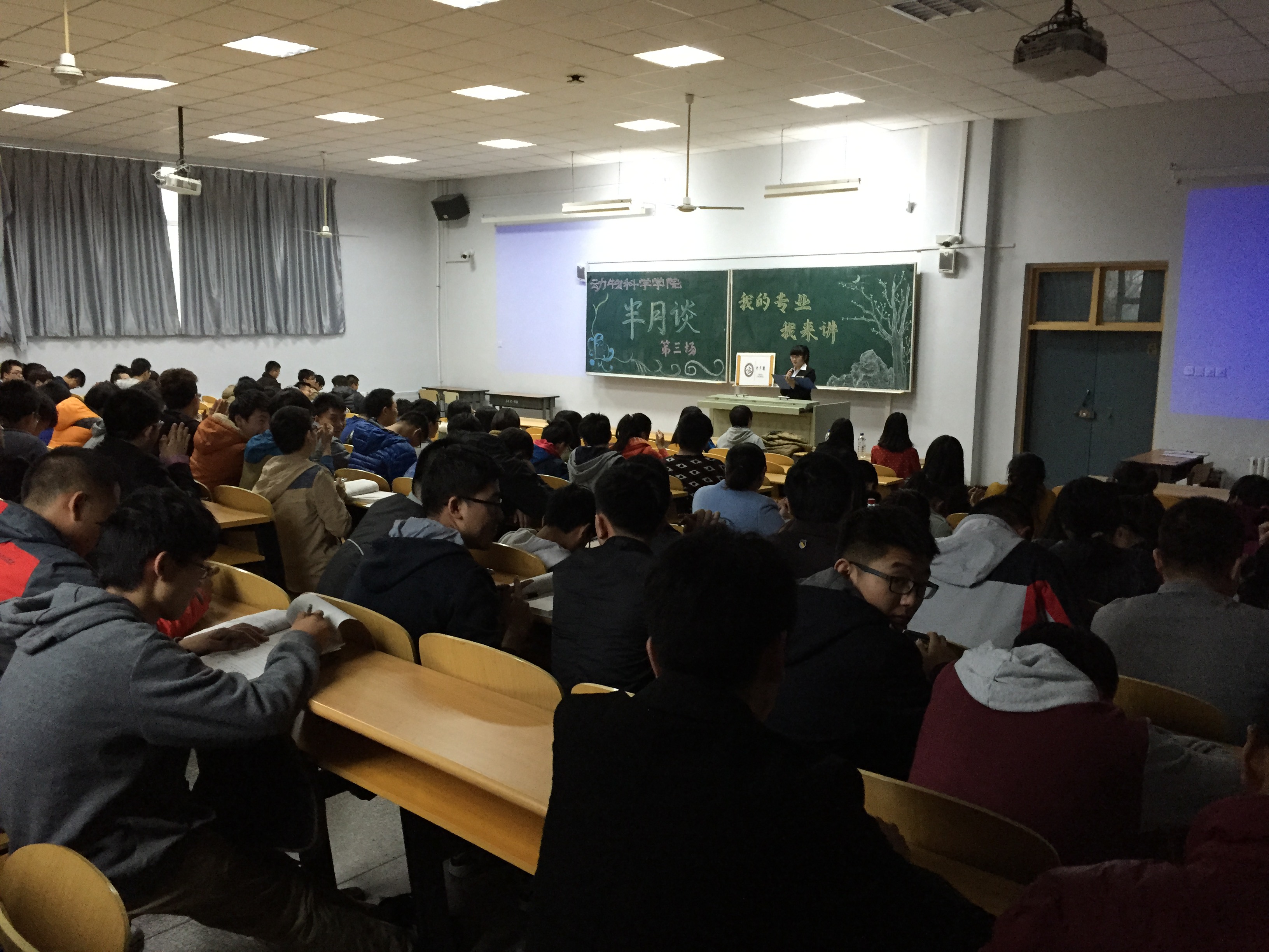 2015年4月2日,周四下午四点,beat365英国官方网站2014级全体本科生齐聚科学讲堂200教室,以热烈的掌声欢迎本期嘉宾2011生物技术(动物)专业的王一名学姐和2012级生物技术(动物)专业的吴志竞学姐参加本次分享会。