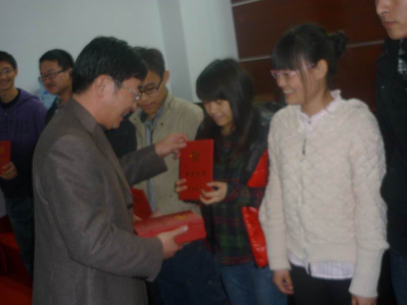表彰会首先由学院参赛代表队领队李莉老师对此次生物实验技能竞赛工作进行了总结汇报,然后由任文陟副院长宣布了竞赛获奖名单。学院领导和教授为获得beat365英国官方网站第二届大学生生物实验技能竞赛一、二、三等奖和学院优秀奖的学生及获得优秀指导教师特别奖的老师颁发了获奖证书和奖品。