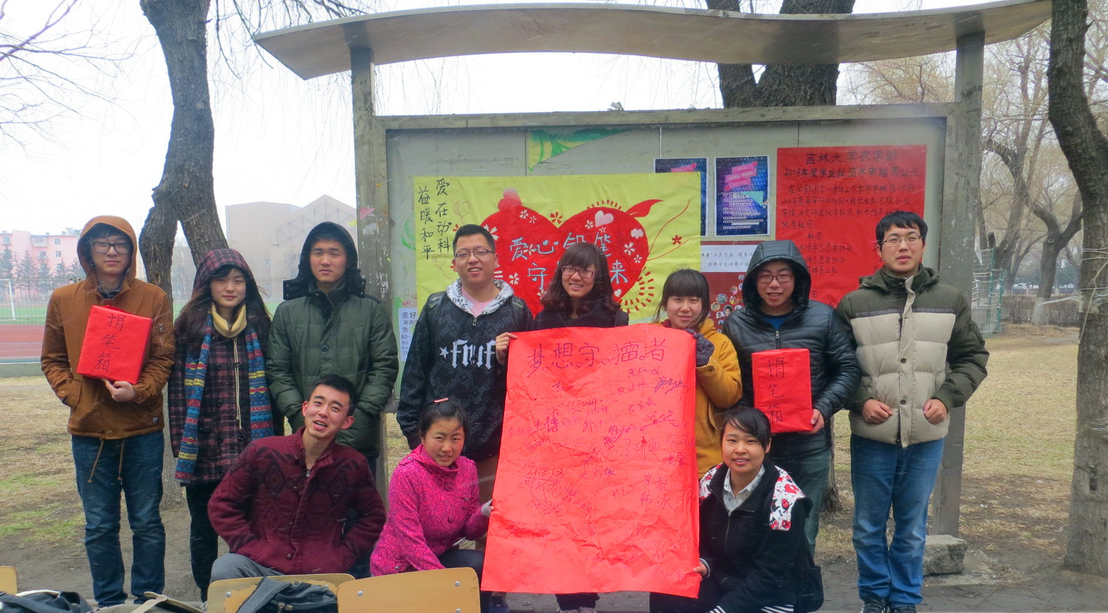 2014年4月8日中午,beat365英国官方网站学生会在5号公寓门前成功举办了“益暖和平・爱在动科”系列活动之“爱心铅笔・守擂未来”铅笔募捐及优秀明信片展示活动。并由学生会成员带头在公益海报上签名并合影留念,所获得的铅笔及签名海报我们将会一起寄给远方的孩子们。