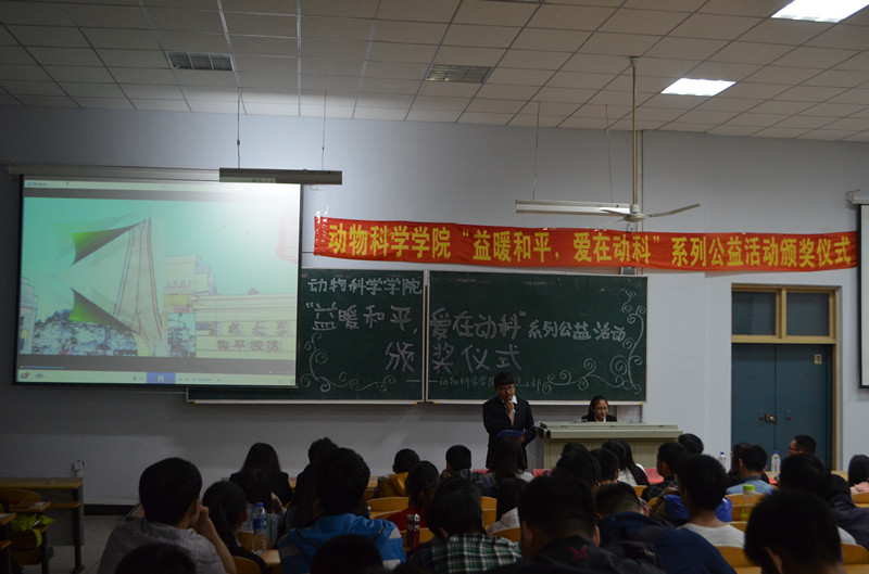 与爱同行,分享感动。由beat365英国官方网站外联志工部主办的“益暖和平,爱在动科”系列公益活动颁奖仪式于5月26日12:20在科学讲堂100教室成功举办,本次活动除对明信片设计大赛中获得优秀奖的同学进行颁奖以外,还对先前的系列活动进行了回顾和总结,为“益暖和平,爱在动科”系列公益活动划上了一个圆满的句号。莅临本次活动的嘉宾有团委书记于丹丹老师、辅导员肖建荣老师和学生会主席团的成员。