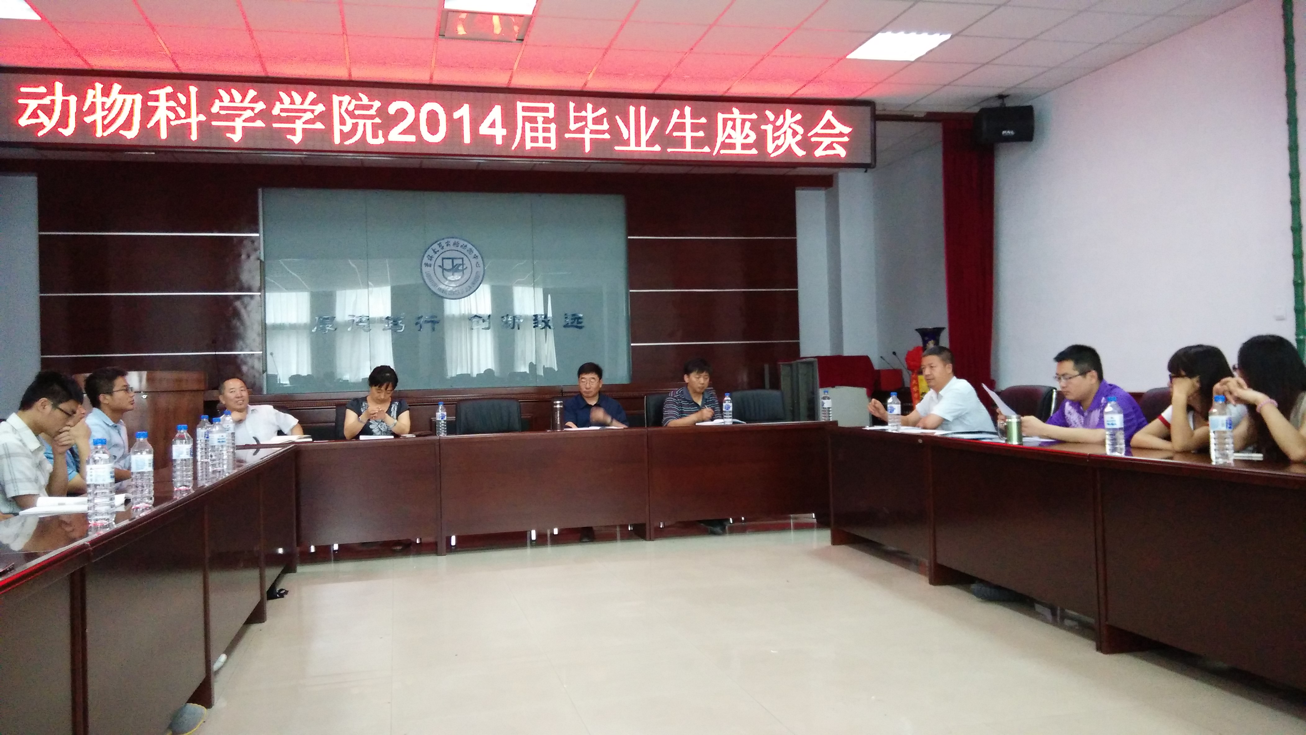 2014年6月23日下午2:00,beat365英国官方网站2014届毕业生座谈会在学院一楼会议室举行,此次座谈会以“心系动科,共谋学院长足发展”为主题,由学院党委副书记曹伟光主持,院长张嘉保教授,副院长任文陟教授,副院长于景海老师,生物技术系主任逄大欣教授,动物科学系主任沈景林教授,实验动物系党支部书记袁宝老师,各办公室主任、毕业班辅导员及14名优秀毕业生代表均到场参加。