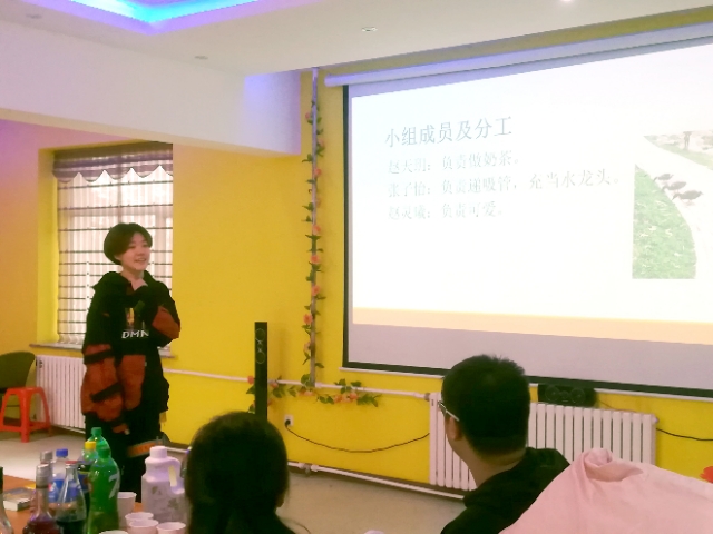 仪式伊始,主持人张超介绍了评委肖建荣老师并简要介绍了各参赛者的创业成果。紧接着,创业者们开始向评委们分享活动期间的创业成果和创业心得。首先由来自“奶茶工坊”的代表赵天玥同学展示创业成果,总结活动中的经验和不足,分享心得。紧接着是来自2018级的“全圆遇见”小队代表杜怡宁、白鑫雨同学讲述小组在创业过程中点点滴滴,遇到的困难和帮助,分享收获。然后是来自2017级的“饮火酒吧”代表白元滨,马泽同学展示和平校区第一间饮火酒吧的创立,发展,以及由酒吧成员所发起的和平校区品酒大会的活动情况。第四位上台展示的是来自2017级的“水果捞小铺”代表李璐同学,她认真详细的阐述了对创业产品的选择、成本、原料购买地点、人员分工、配送货等在创业过程中的各方面的问题,并总结在此次活动中的收获。
