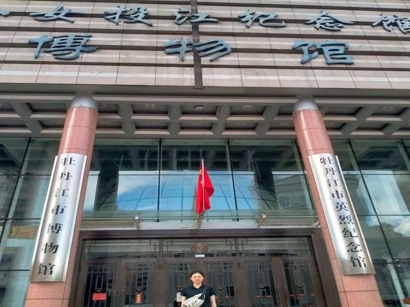 八女投江殉难地标志为“八女投江”纪念碑,碑质为花岗岩,正面刻有陈雷题词“八女英魂光照千秋”八字。碑左为革命烈士纪念馆,陈列烈士简介及画像,以及刀枪和遗物。1938年秋,抗联八名女战士为掩护主力部队与日军展开激战,被围困于乌斯浑河后高呼“打倒日本帝国主义!”,集体殉国。八女投江纪念馆内庄严肃穆,在讲解工作人员的带领与讲解下,团队成员认真观看了每一件历史资料,对八女投江英雄事迹以及牡丹江抗日斗争等红色记忆有了更加深入与直观的了解。