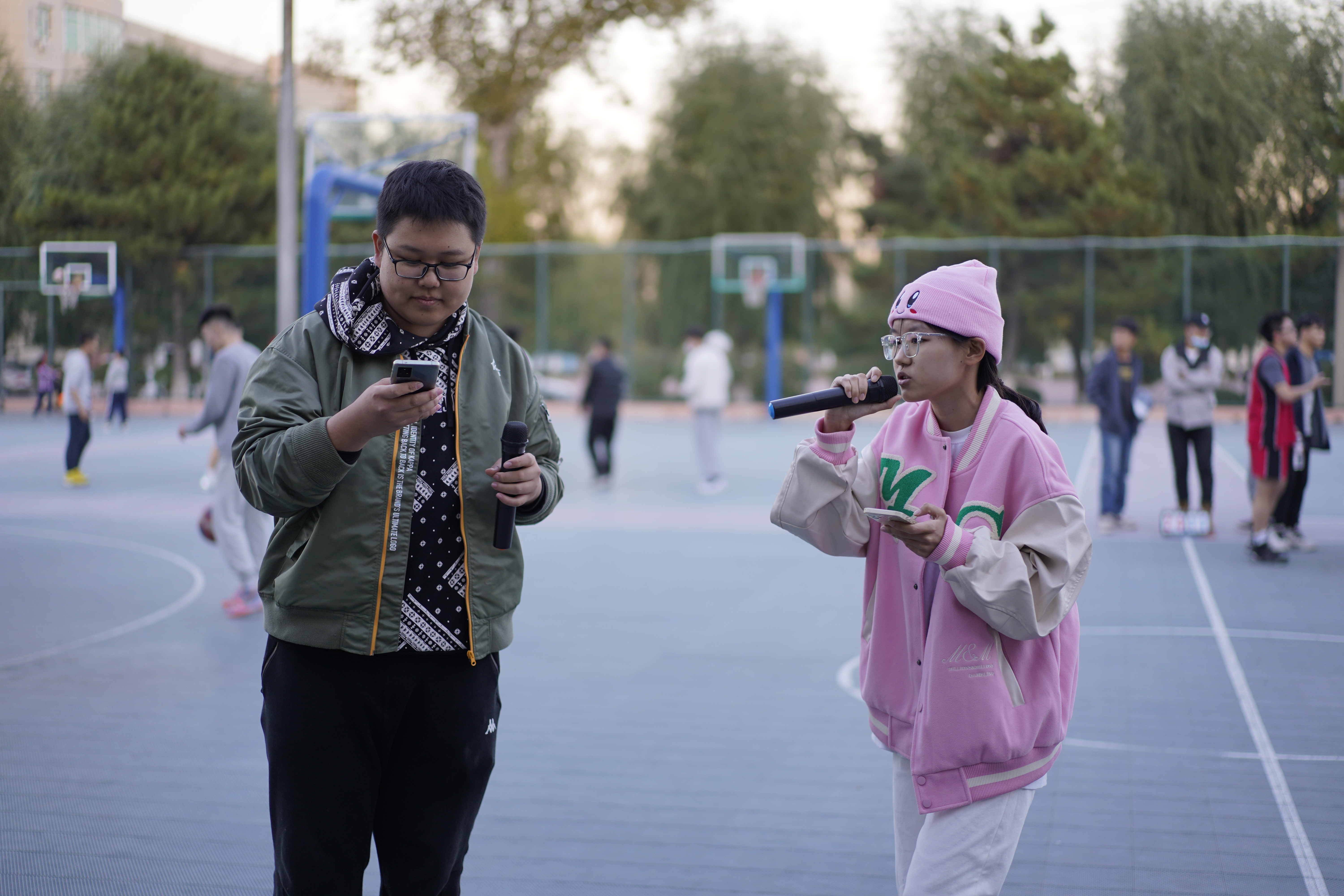 中场休息时,由2021级本科生史柏赫、杨昊同学带来歌曲《南山南》,江禹莹、唐文博同学带来歌曲《听妈妈的话》,动人的旋律暂时舒缓了现场紧张的气氛。在此期间,每队的队员们也加紧沟通协商、重新分布战术。下半场比赛开始,新生队配合更加默契,努力追赶比分,但最终还是以15分的差距遗憾落败。在比赛结束后,双方队员握手相拥,互视友好,合影留念。