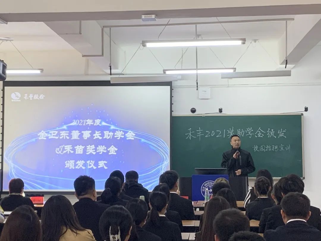 据了解,“禾丰董事长助学金”是由禾丰股份董事长金卫东先生个人出资捐助的,目的在于帮助家庭经济困难的本科学生顺利完成学业,鼓励学生积极进取,奋发向上,激发他们以更高昂的学习状态,向着更远大的目标不懈努力。“禾苗奖学金”旨在鼓励先进,奖优促学,引导当代大学生成为德智体美劳全面发展的时代新人。