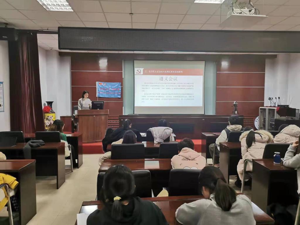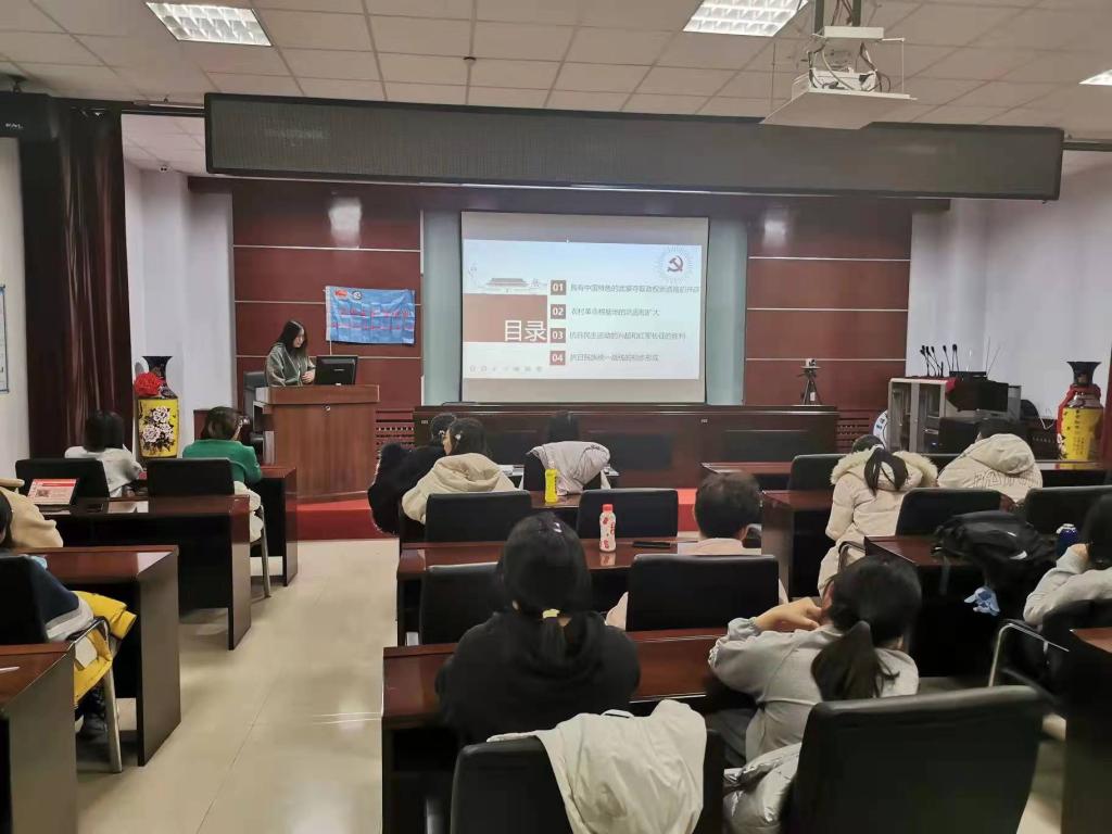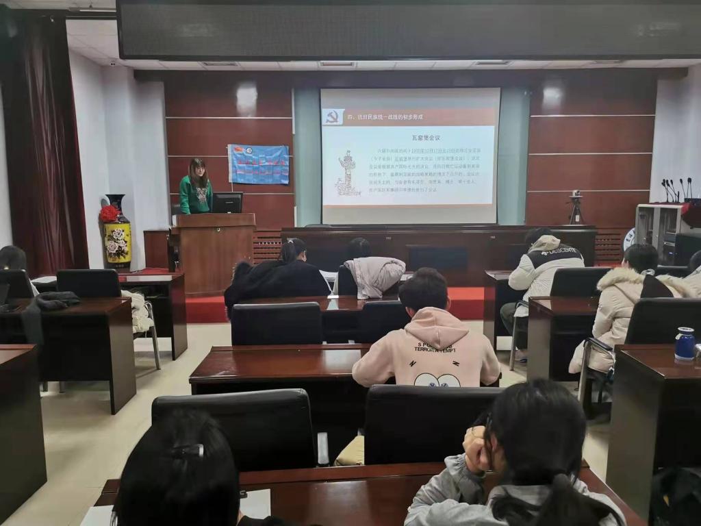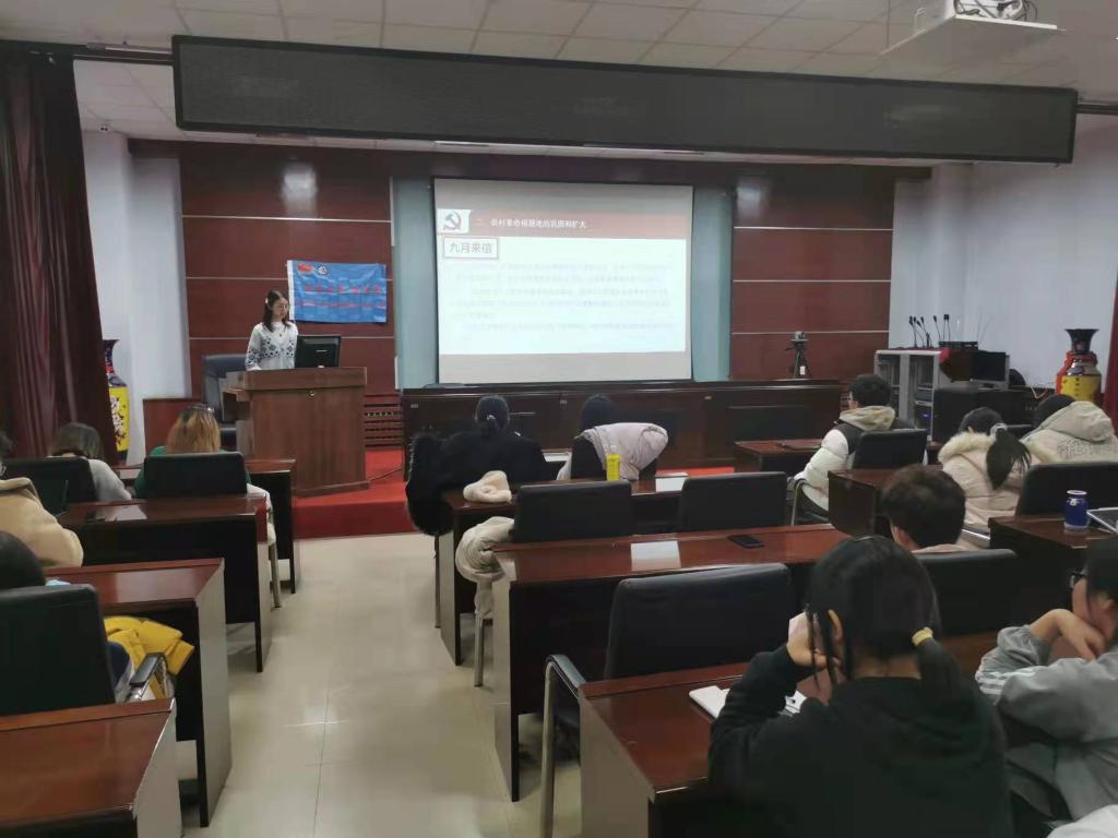 在中国共产党成立100周年之际,为深入开展党史学习教育,贯彻beat365英国官方网站党委“五讲·五育”的工作部署,激励和引领青年学生进一步坚定“四个自信”,在党和人民最需要的地方贡献力量、绽放青春,beat365英国官方网站本科生党支部组织“五讲·五育”宣讲团于2021年12月7日晚7时在动科楼一楼会议室开展了土地革命战争时期党团联合宣讲活动。本次活动由beat365英国官方网站本科生党支部成员田娜、刘欢、潘惠豪、王俣潼、张雨馨、杜怡宁、韩胜男进行宣讲,学生辅导员尹暄齐出席,2020级1班团支部共24人参加了学习。