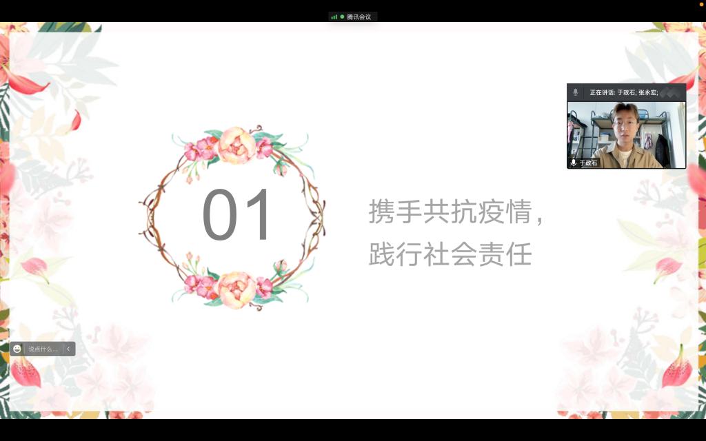 最后,班长冉黎玮对本次班会进行总结,她表示虽然自己不能够在学校和同学们一起共抗疫情,但她也会在线上保证班内日常事务的正常开展和推进。作为班长,她将协助辅导员和学院为同学们解决目前封寝生活中的相关问题。