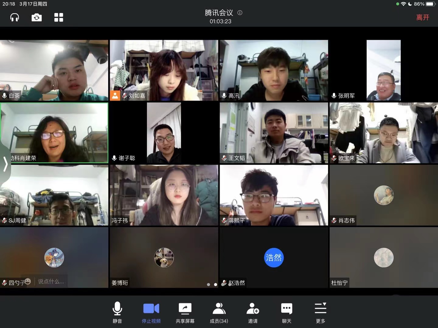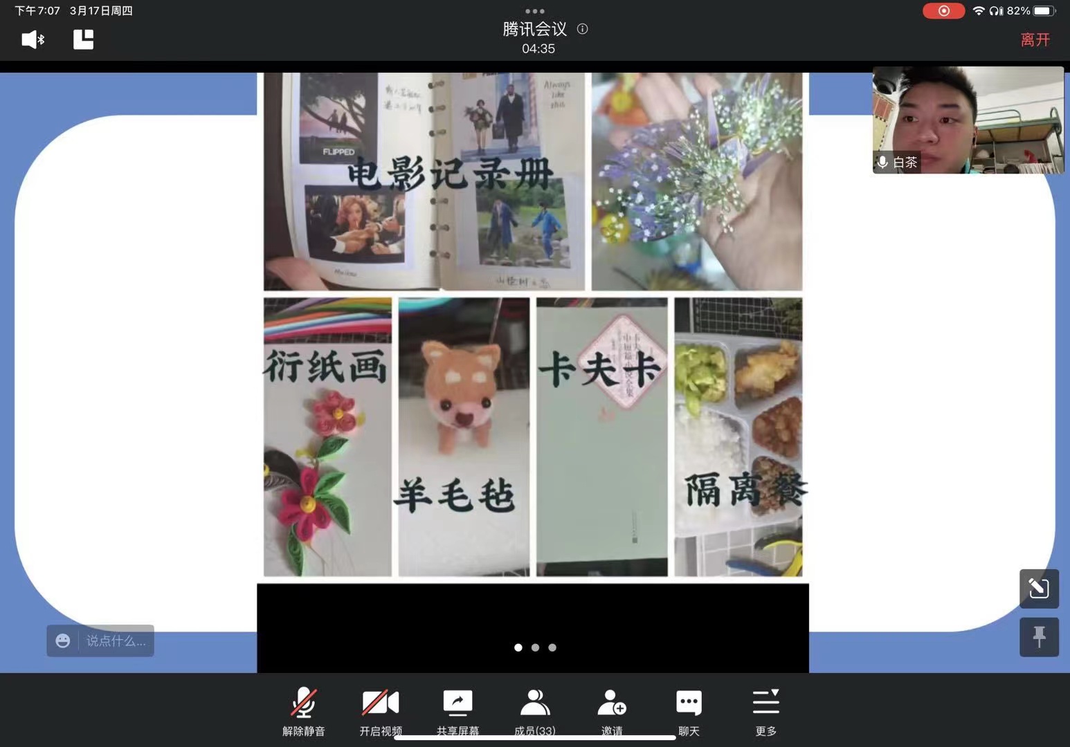 会议伊始,高汛同学梳理了自封闭管理以来同学们的心路历程变化。全体师生观看《身边人》战“疫”故事短片,片中展现了当代大学生在疫情封校期间所展现出的积极精神风貌。同学们也集中提出了有关于当前面临的问题,主要集中在毕业设计、考研复试、考研调剂、求职就业等方面,与会老师耐心细致地解答了同学们提出的问题,帮助大家正确分析认识当前形势,适时调整个人心态和学业规划。会议最后,肖建荣老师询问了2018在校外实习的2018级学生的目前的学习生活情况,她强调:在校外实习的同学们一定要做好个人防护,按时在网络办事大厅签到打卡,与学校老师保持联系。
