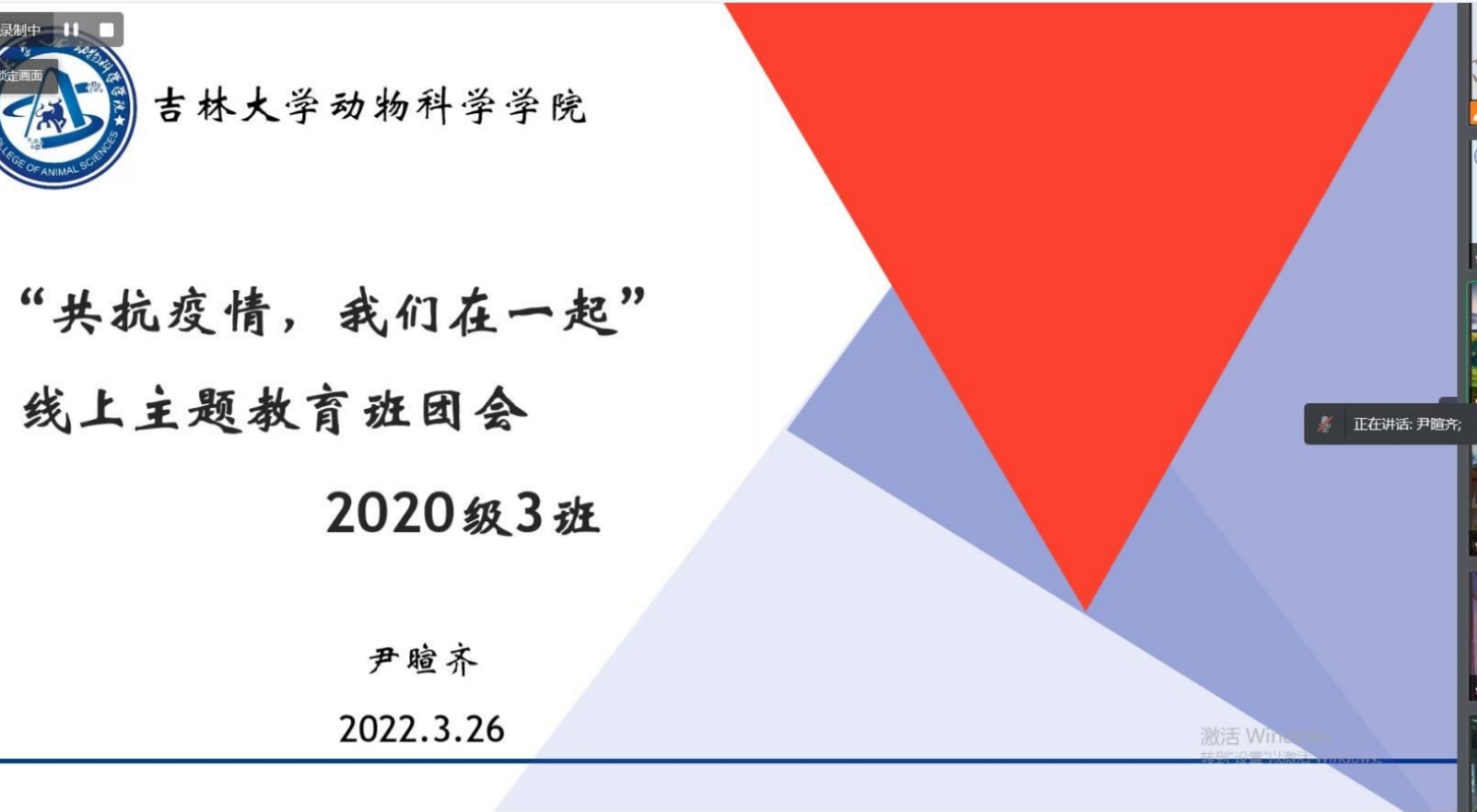 连日来,吉林省疫情形势严峻,多地本土确诊病例和无症状感染者数量持续增加。为明确疫情防控期间基本政策和推进思政教育的线上开展,beat365英国官方网站2020级3班于3月16日晚召开“共抗疫情,我们在一起”线上主题教育班团会。班会由辅导员尹暄齐主持,学院副院长袁宝、班主任丁瑜、2018级刘鑫苗同学以及三班全体同学参加会议。