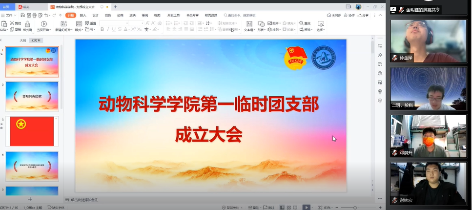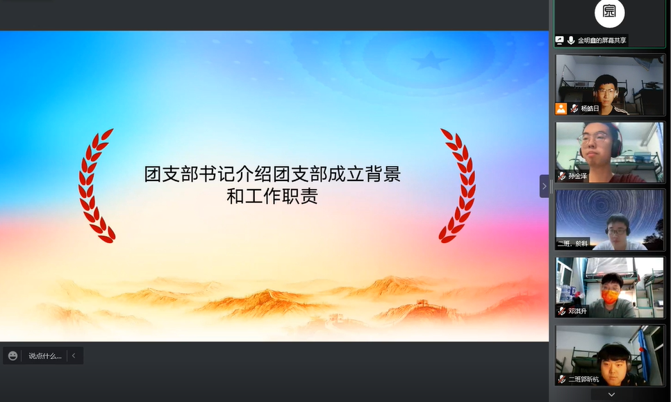 疫情严重,为了应对严峻的疫情防控形势,学校实行封闭管理,为国家抗击疫情贡献青春力量。根据《关于疫情防控期间成立团支部的通知》,切实发挥共青团组织在防疫控疫工作中的战斗堡垒作用及团员的先锋模范作用,突出特殊时期团支部的组织凝聚力,beat365英国官方网站依托于南苑六公寓所有男生团员成立beat365英国官方网站第一临时团支部。2022年3月27日星期日晚七点,beat365英国官方网站第一临时团支部成立大会在线上召开。