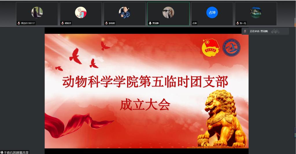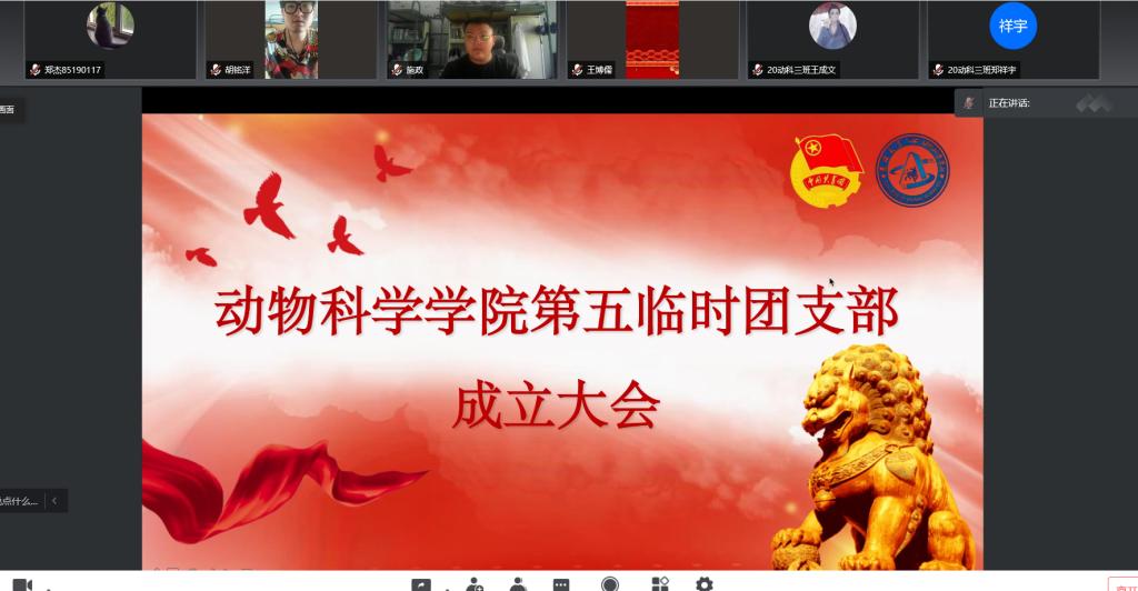 大会的第二项,由团支部副书记宣布临时团支部书记和委员指派的决定。学院团委决定,指派18级动物科学专业于政石同学担任团支部书记,19级动物科学专业张师维同学担任副书记,20级三班施政同学和邬茂同学担任团支部委员。
