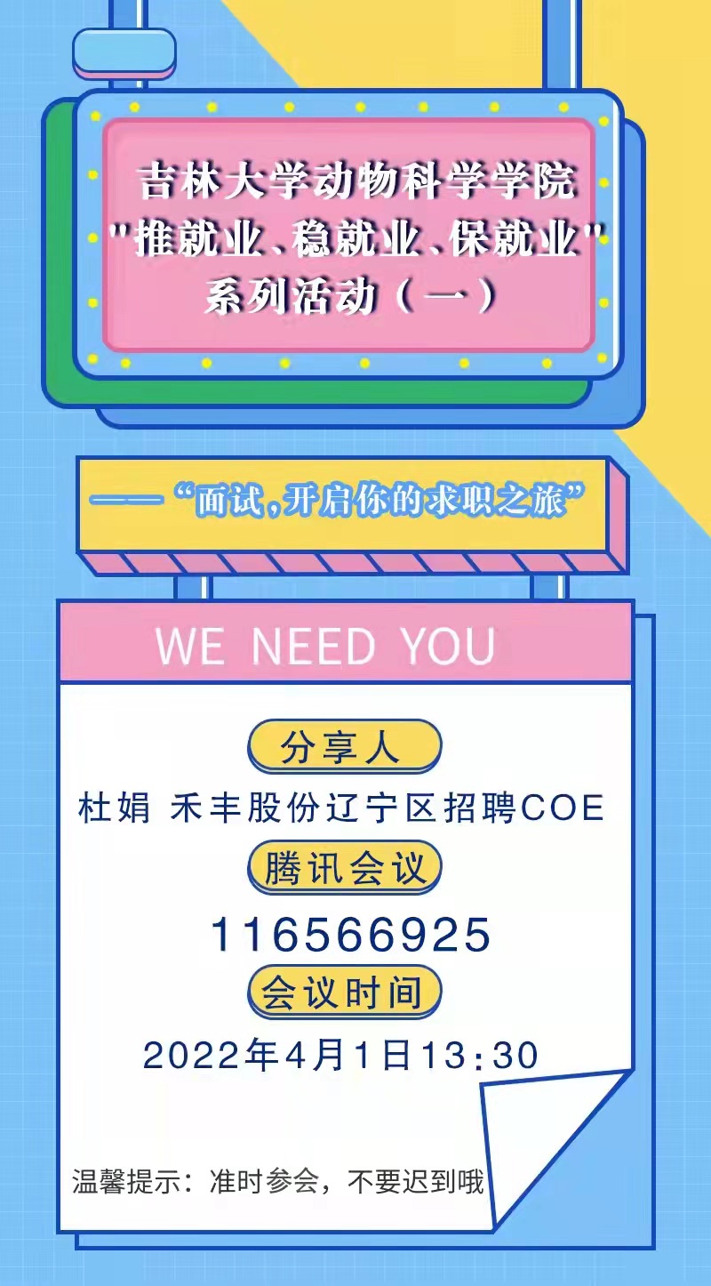 4月1日下午,学院举办“面试,开启你的求职之旅”分享会,邀请禾丰股份辽宁区招聘COE杜鹃为分享人。杜鹃首先介绍了禾丰集团的企业文化,并从“如何获取招聘信息”、“怎样选择合适公司”、“简历制作”以及“面试技巧”等方面进行了面试经验分享。她还从企业简介、长期发展、薪资福利等方面对禾丰集团的招聘岗位做出了详细介绍。