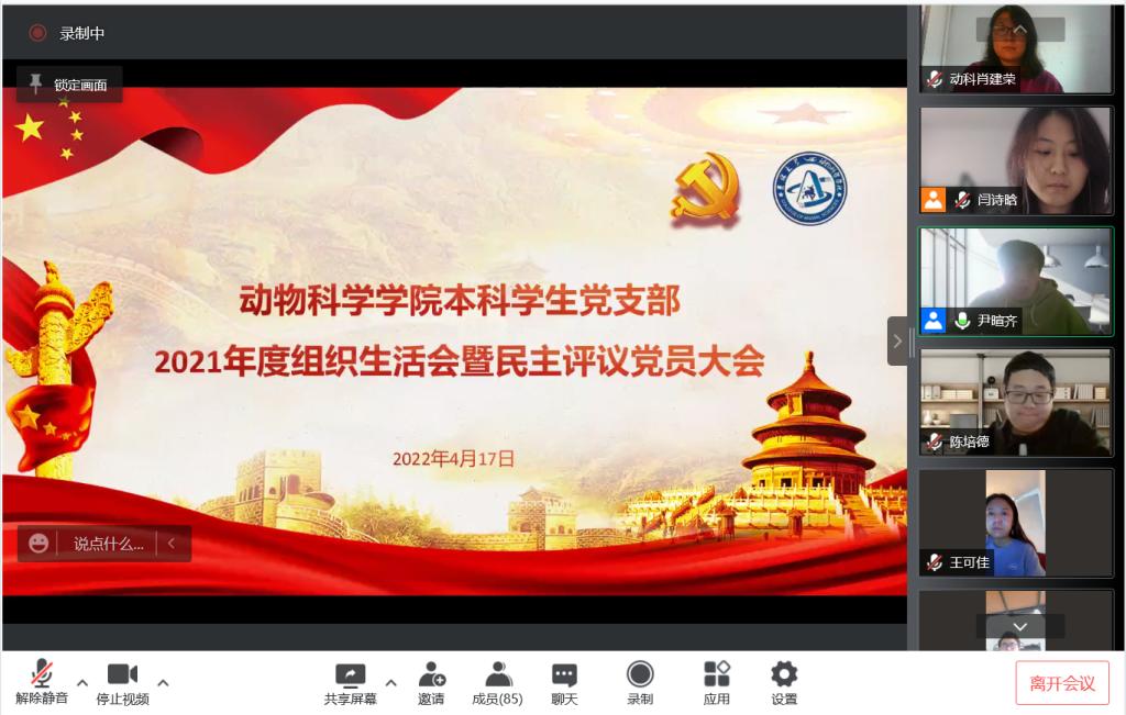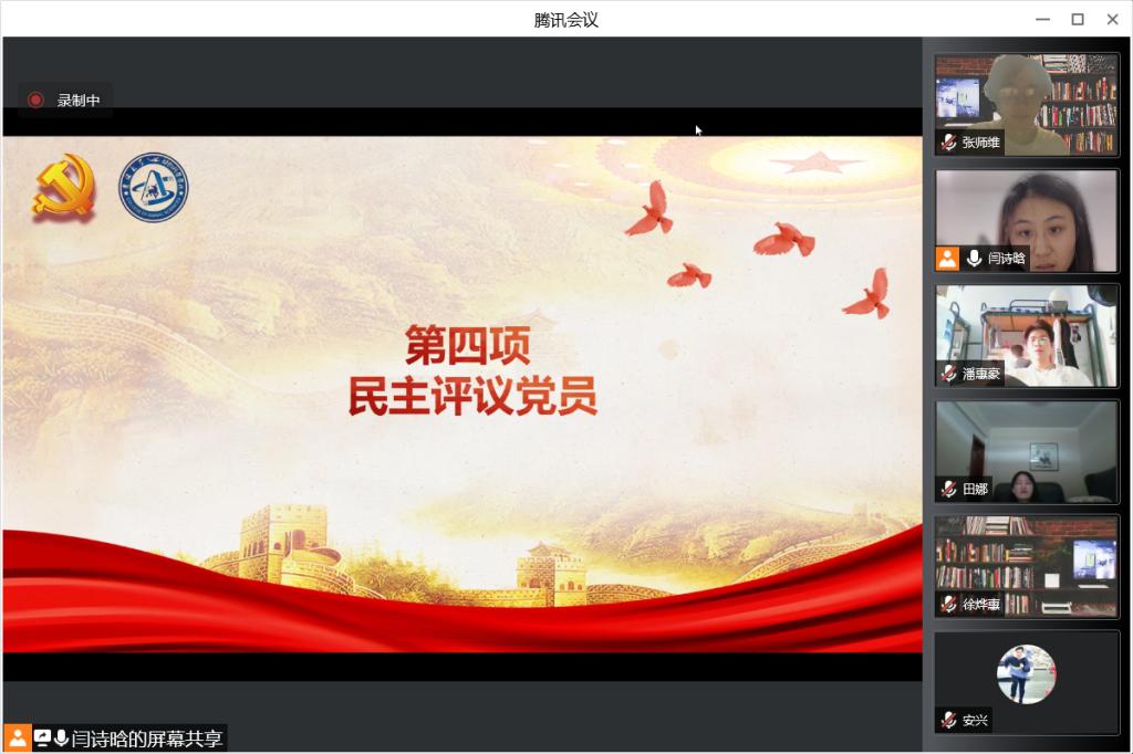 为深入学习贯彻习近平新时代中国特色社会主义思想和党的十九届六中全会精神,深入查摆支部党员在思想与学习工作等方面存在的不足与问题,以切实加强支部成员的凝聚力、向心力,根据学校党委关于召开2021年度基层党组织组织生活会和开展民主评议党员的通知要求,2022年4月18日14时,beat365英国官方网站本科学生党支部于线上召开2021年组织生活会暨民主评议大会,会议由本科学生党支部副书记尹暄齐主持,学院党委副书记兼党支部书记肖建荣、学生辅导员王可佳以及支部全体学生党员参会。