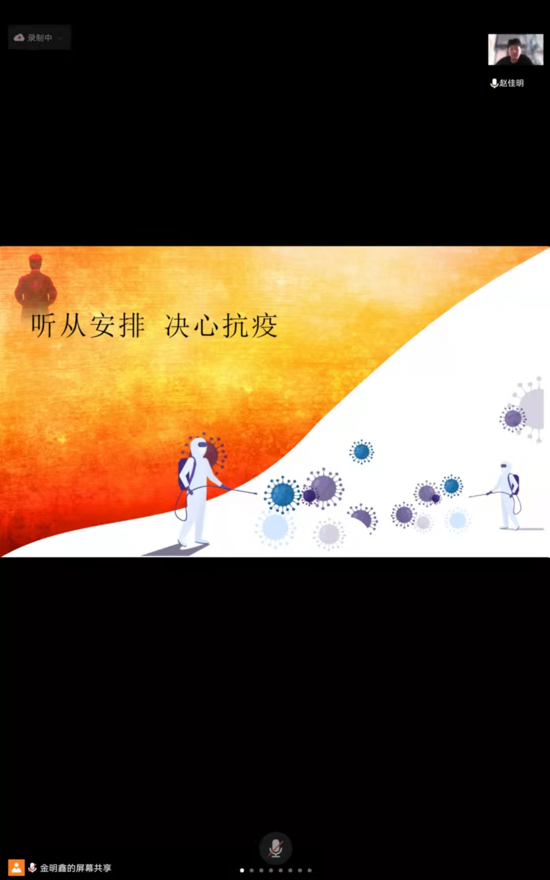 随后,同学们一起观看由支部组织委员杨皓日制作的抗疫视频,向大家展示了疫情下的中国,面对突如其来的新一轮疫情,全国人民上下团结一心,众志成城,与这场料峭倒春寒昼夜奋战。