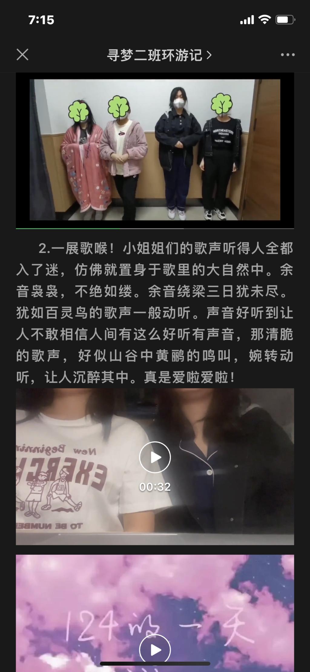来自2班的四位女孩带来一段小鸡恰恰舞,舞姿可爱俏皮、活泼又不失优雅。通过快乐的舞蹈将欢乐传递给大家,通过视频剪辑的方式展现大家的封寝生活。