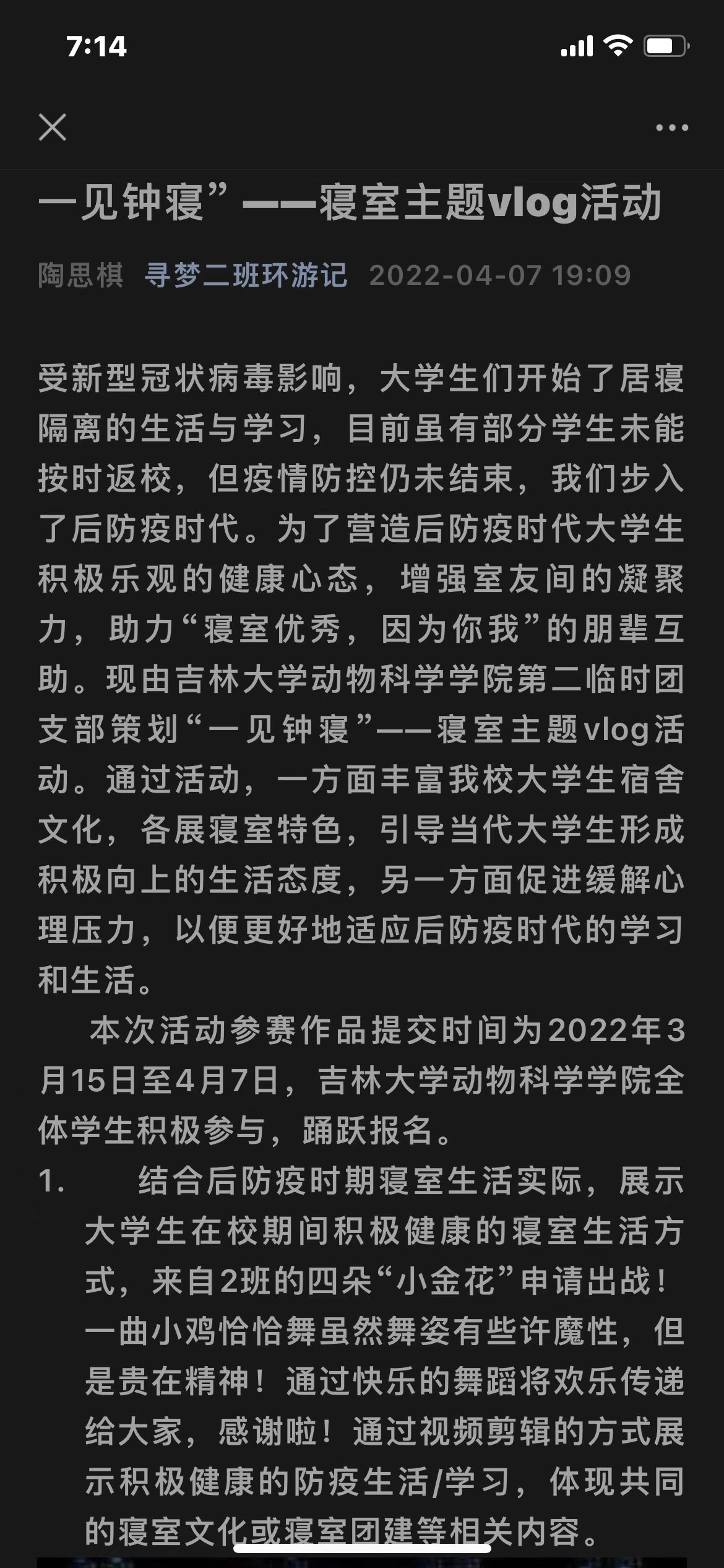 为应对突如其来的疫情,我校进入封闭管理模式。为了帮助大家保持积极向上的心态,增强室友之间、同学之间的的凝聚力,beat365英国官方网站第二临时团支部于2022年4月举办了“一见钟寝”主题vlog团日活动。