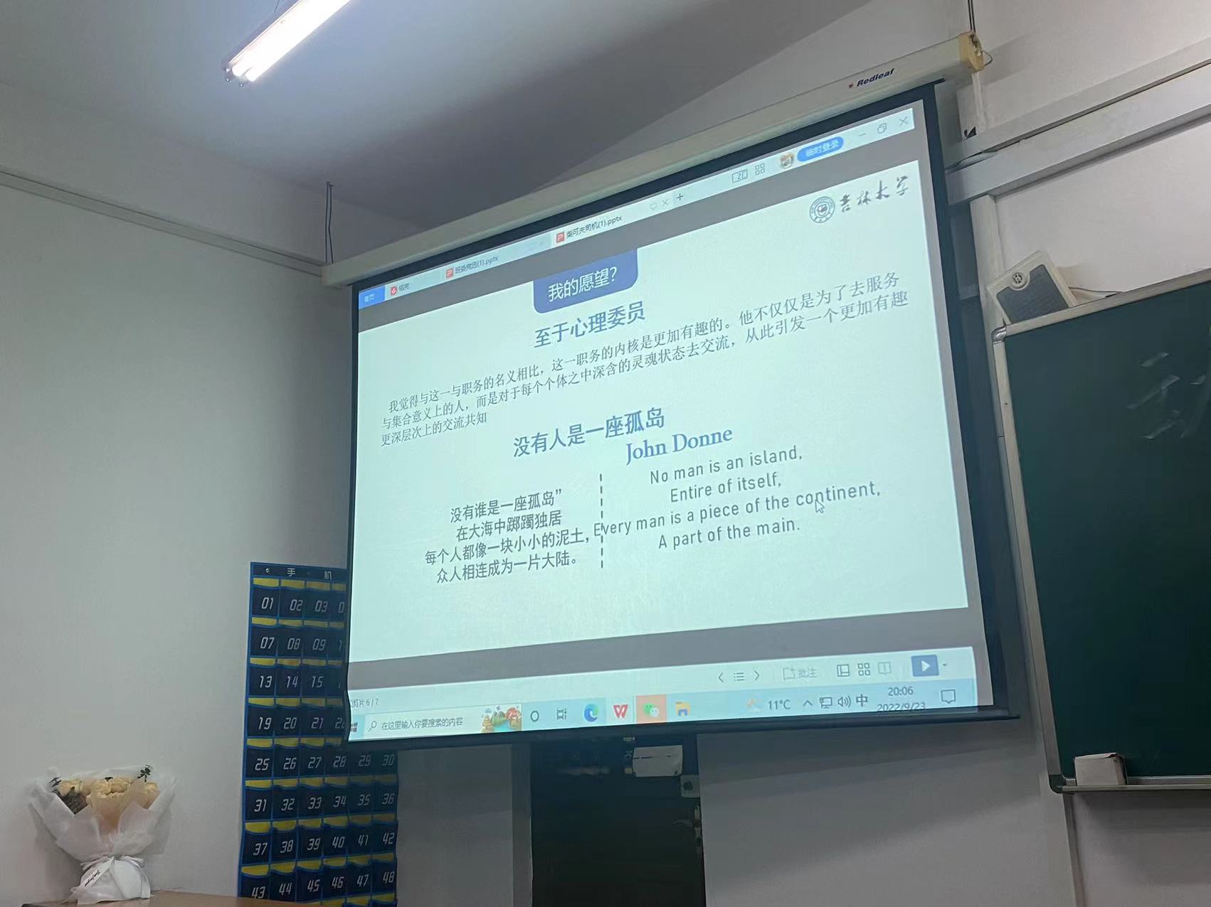 班会尾声,辅导员王可佳及班主任为同学们送上了大学的祝福和寄语。希望全体2022级新同学能够以本次班会为起点,更好地适当大学的学习节奏和生活节奏,开启美好的四年大学征程,实现自己的人生价值和理想。