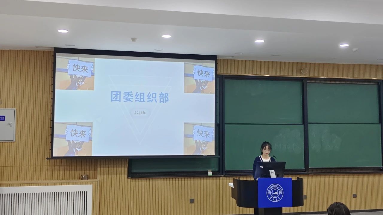 在学院团委宣讲环节,团委副书记李尚泽、皇甫开心对学院团委的整体情况进行了介绍,展示了团委活动活泼而又多彩的一面,对新生们所关心的大学入团入党等相关问题进行了讲解。团委办公室负责人蒋鑫淼、组织部负责人郭诗萌、志工部负责人张敬宜和心理部负责人杨明达分别进行了部门介绍。