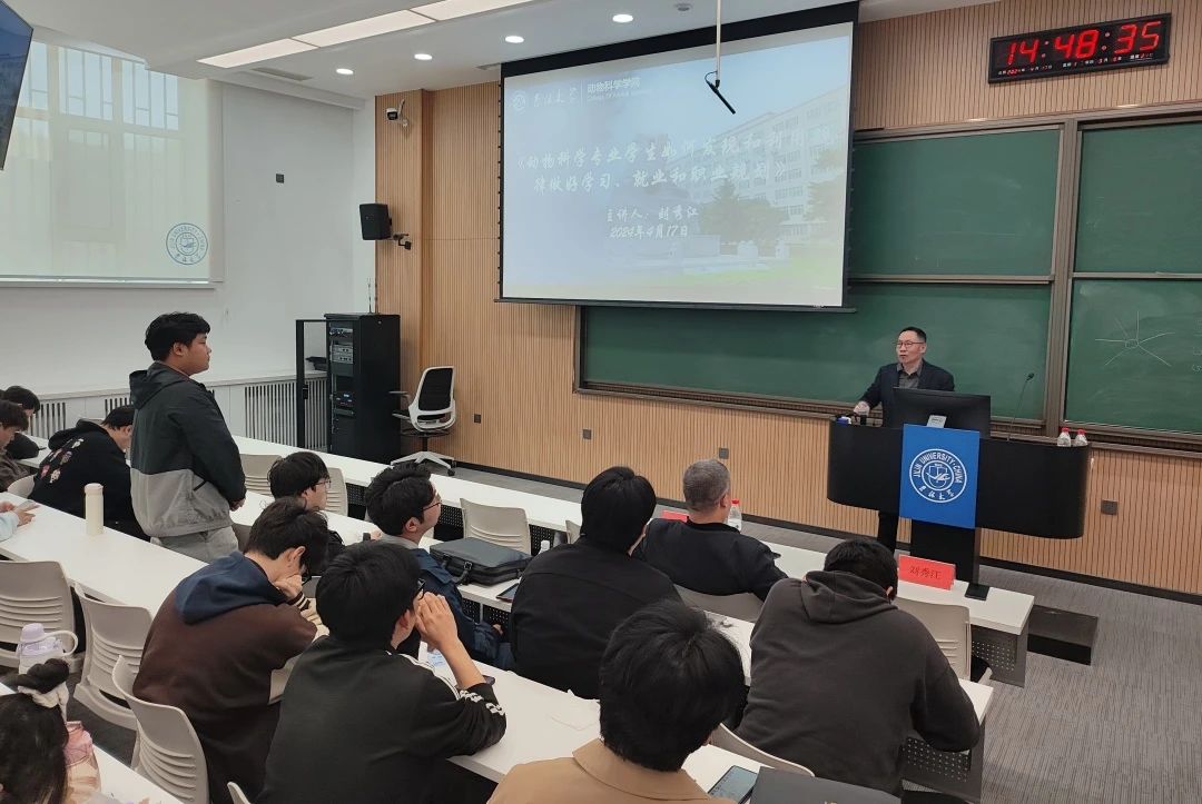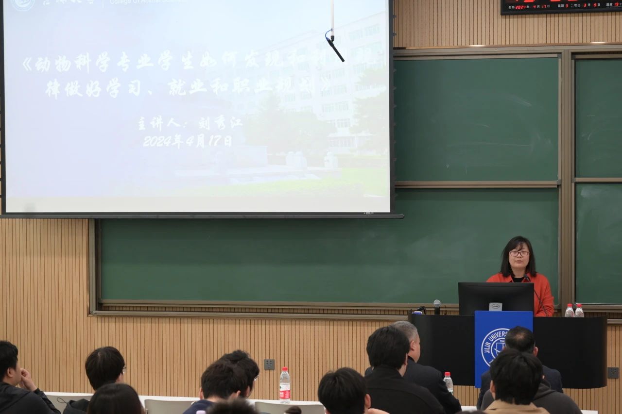 刘秀江以“文化的力量”为题,对动物科学专业学生“如何发现和利用规律做好学习、就业和职业规划”进行了类比分享。他全程引用三国中的人物故事,由古及今,以古鉴今,他指出大学是充满选择和挑战的阶段,极易产生迷茫和焦虑情绪,作为青年学生要饱有“求实创新”的学习韧劲,以扎实的专业基础探索完善的科研内容,要有好奇心,知学好学,学以致用,为现代畜牧业发展解决急难愁盼的实际问题;作为职场青年要以“事业之心”敬畏工作,激发成长内驱力,注重本领提升,抓住机会、广泛训练职场竞争软实力;作为双一流高校农科学子要树立专业自信、行业自信和文化自信,广阔的农牧天地和中国农业的现代化进程亟需更多的青年学生助力攻坚。最后,他借用beat365英国官方网站“求实创新,励志图强”的校训,鼓励同学们要珍惜时光,脚踏实地,追求卓越。