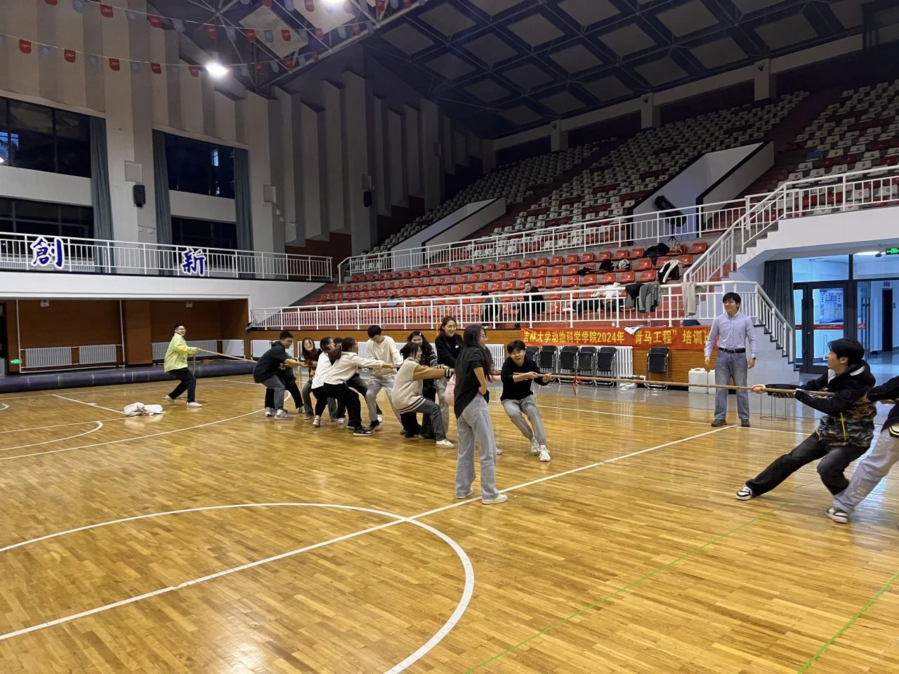 活动伊始,同学们随机分为四组,分别为“飞跃无限组”“全力以赴组”“节节高升组”“勇攀高峰组”。一系列丰富多彩的团建活动逐一展开。
