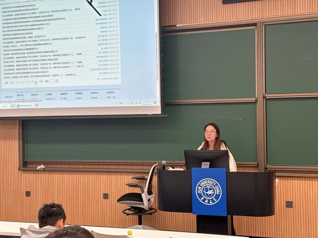 12月19日,2022级本科生年级大会召开。会上,辅导员王可佳对近两学期本年级考风考纪建设的结果作出肯定,并再次强调诚信考试的重要意义。诚信考试不仅是对知识的尊重,也是个人品质的体现,同学们不要抱有侥幸心理。22级同学处于未来规划的重要节点,她鼓励同学们在未来的期末考试中怀诚赴考,全力以赴;在寒假期间积极参与各类活动,丰富个人履历,合理规划自己的学习和生活,为未来做好充分的准备。接着,王可佳就校内交通安全和寒假安全提出了建议,她提醒学生要树牢安全意识,叮嘱学生在离校前一定整理好贵重物品,携带必需用品,打扫寝室卫生。