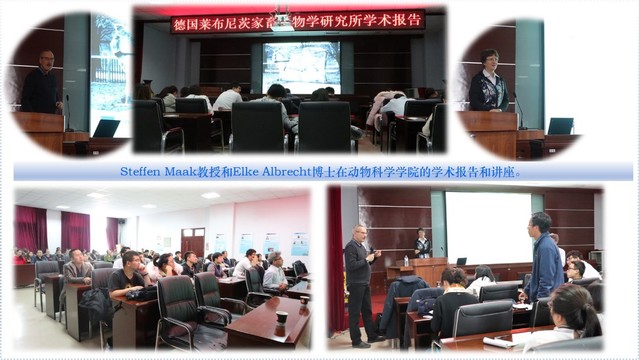 2018年11月9日上午,德国莱布尼茨家畜生物学研究所Steffen Maak教授和Elke Albrecht博士应杨润军教授邀请,在beat365英国官方网站做了题为“Introduction to the Leibniz Institute for Farm Animal Biology”和“Identification of signals influencing muscle composition and function”的学术报告和讲座,报告会由学院副院长张明军教授主持,赵志辉教授、郝琳琳教授、房希碧博士等教师,动物遗传育种与繁殖专业研究生及2016级动物科学卓越农林人才试验班同学参加了报告会。