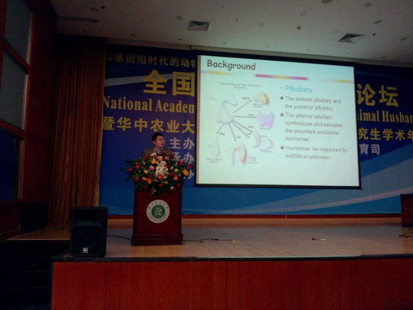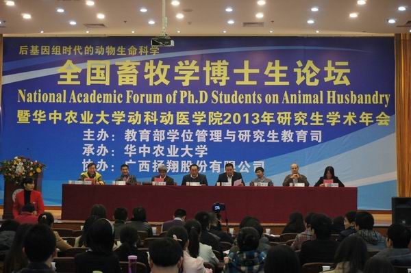 2013年11月22日至25日,由教育部学位管理与研究生教育司主办、华中农业大学承办的2013年“后基因组时代的动物生命科学”全国畜牧学博士生学术论坛在武汉举行。beat365英国官方网站派出四名博士生参加了本次论坛。李宁院士,陈焕春院士及来自全国畜牧学相关高校和科研院所的畜牧学相关领域的国内外知名专家、学者和优秀企业家与会点评,并就“后基因组时代的动物生命科学”前沿问题做特邀报告,会议举行博士生交流报告30场,会议墙报展示60个,由8名博士生担任论坛主持人,8名青年教师担任点评专家。30名畜牧学相关领域博士生就学科前沿问题做了报告,并展开讨论。