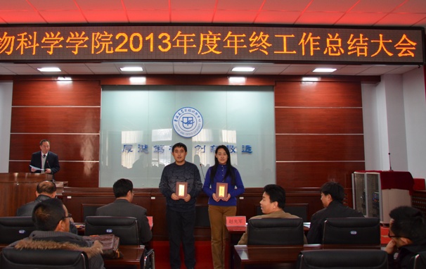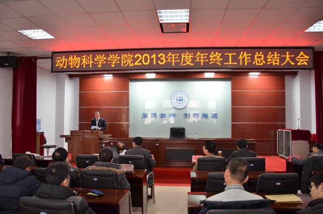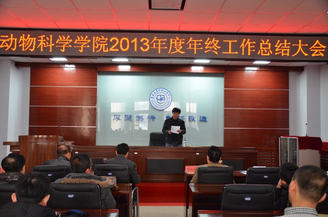 于景海副院长、欧阳红生副院长和任文陟副院长分别宣读了年度先进单位、先进个人、学术年会优秀论文和创新大赛获奖同学的表彰通报。张嘉保院长做2013年度工作总结与2014年工作部署,主要从政治思想、学科建设、人才培养、科研成果和学术交流等几个方面,总结了一年来各项工作取得的成绩。同时对学院发展建设当中存在的问题进行了透彻分析。在对2014年工作进行部署时,张嘉保院长强调以全面提升学院综合实力与实验动物平台建设水平为目标,加大科技开发与成果转化力度,在惠及民生上下功夫,营造“团结和谐、务实进取”的人文生态和工作氛围,加强与国内外知名院校的交流合作,拓宽对外交流渠道。对人才培养、打牢学科基础、凝练科研方向、建设高水平的科研平台等工作提出了具体措施和要求。