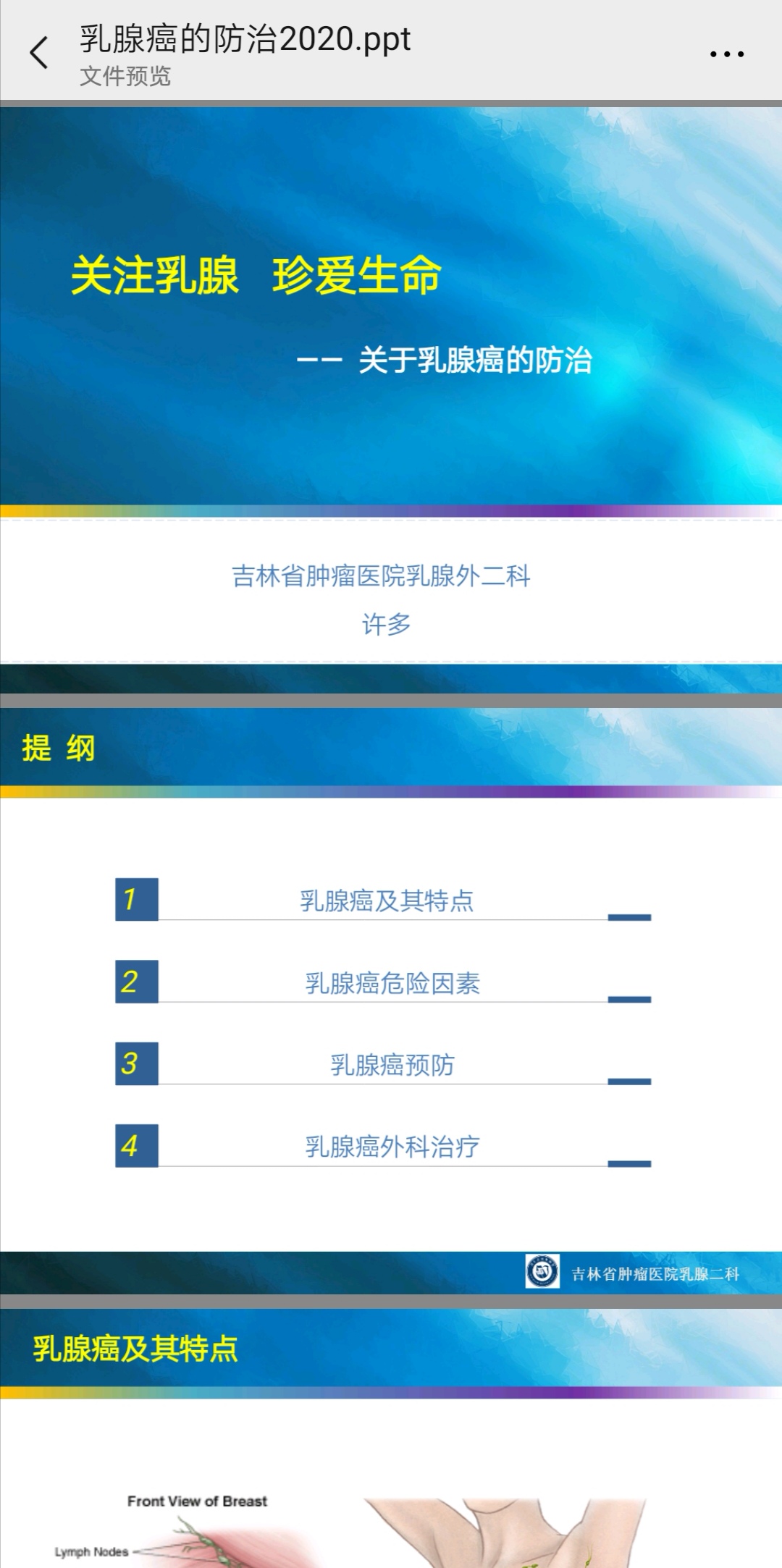 此次健康微课堂活动邀请到了来自吉林省肿瘤医院乳腺二科的许多主治医师,用跨越时空的交流为姐妹们带来了乳腺癌防治的相关话题。微课堂活动受到了女教职工的热烈响应,许多医生的讲解图文并茂,详细生动,在讲座之后,大家纷纷与许医生咨询交流,并收到了耐心详细的解答。