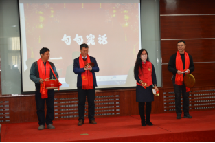 紧接着,班子成员带来自编的配乐诗朗诵《走在新时代》,从百年党史回顾、百年经验总结,讴歌中国共产党百年奋斗的巨大历史成就;从学院建设发展过程、四个统一要求、四有老师标准体现为党育人、为国育才初心;从学习贯彻十九届六中全会精神,凝聚力量、鼓舞斗志,号召全体人员团结奋进。用优美的旋律和饱含深情的朗诵拉开了联谊会的序幕。