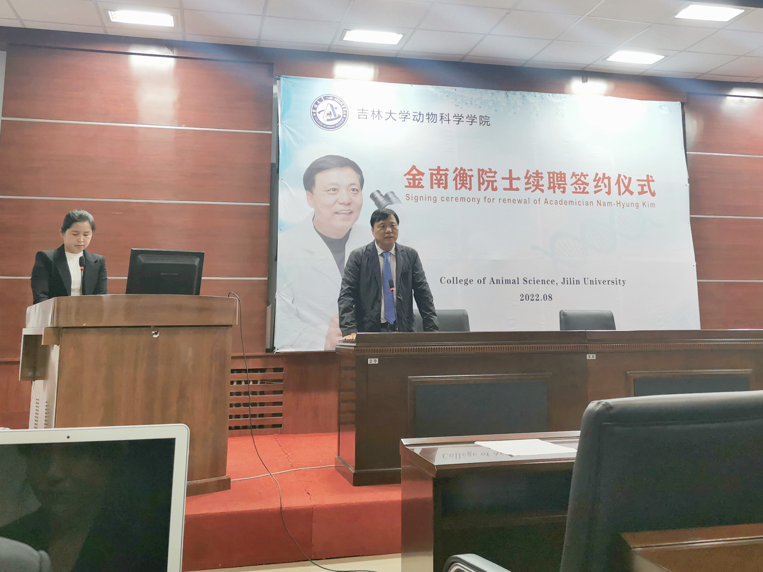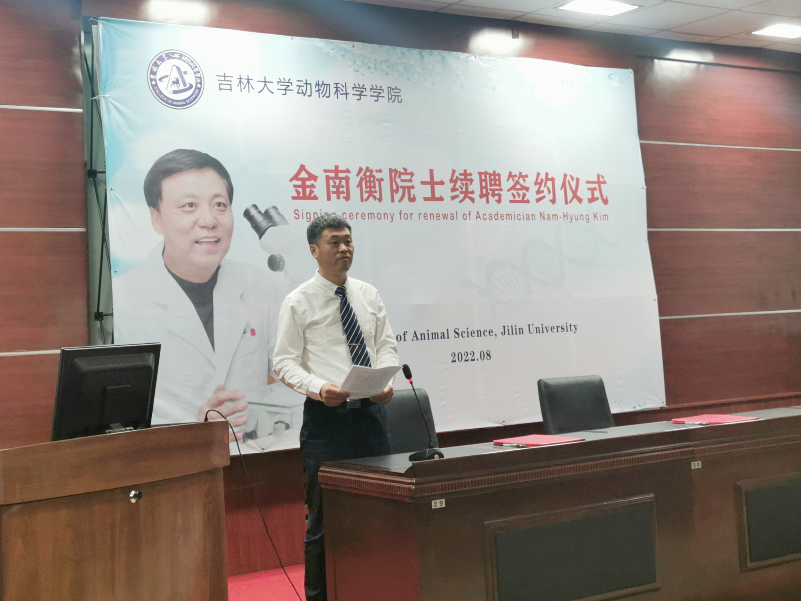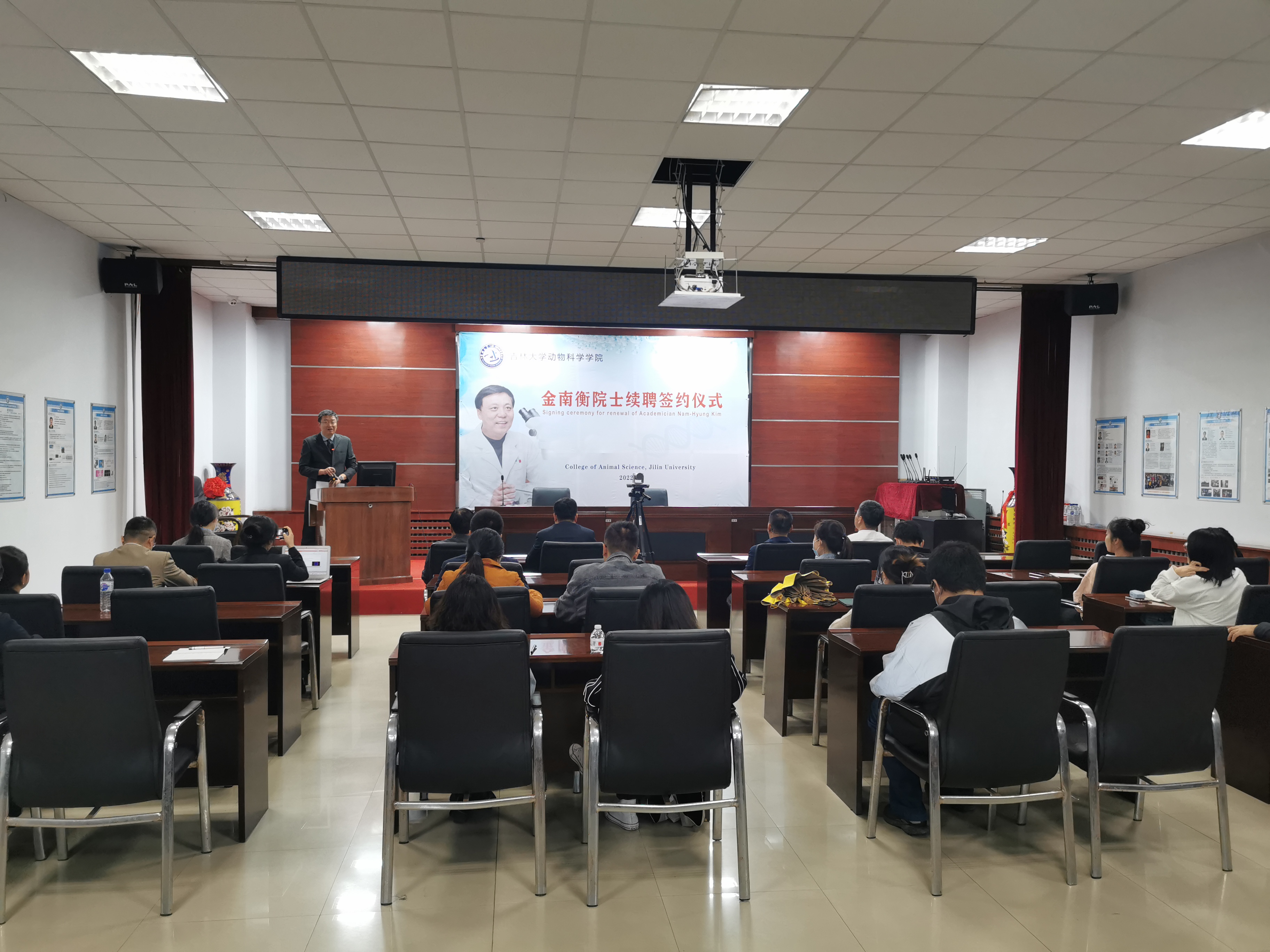 8月29日上午,beat365英国官方网站在学院一楼会议室举行韩国科学与技术院院士、韩国国立忠北大学金南衡教授续聘签约仪式,学院领导班子成员和师生代表线下参加了仪式,全体2022级本科生和研究生新生线上参加,仪式由副院长张明军教授主持。
