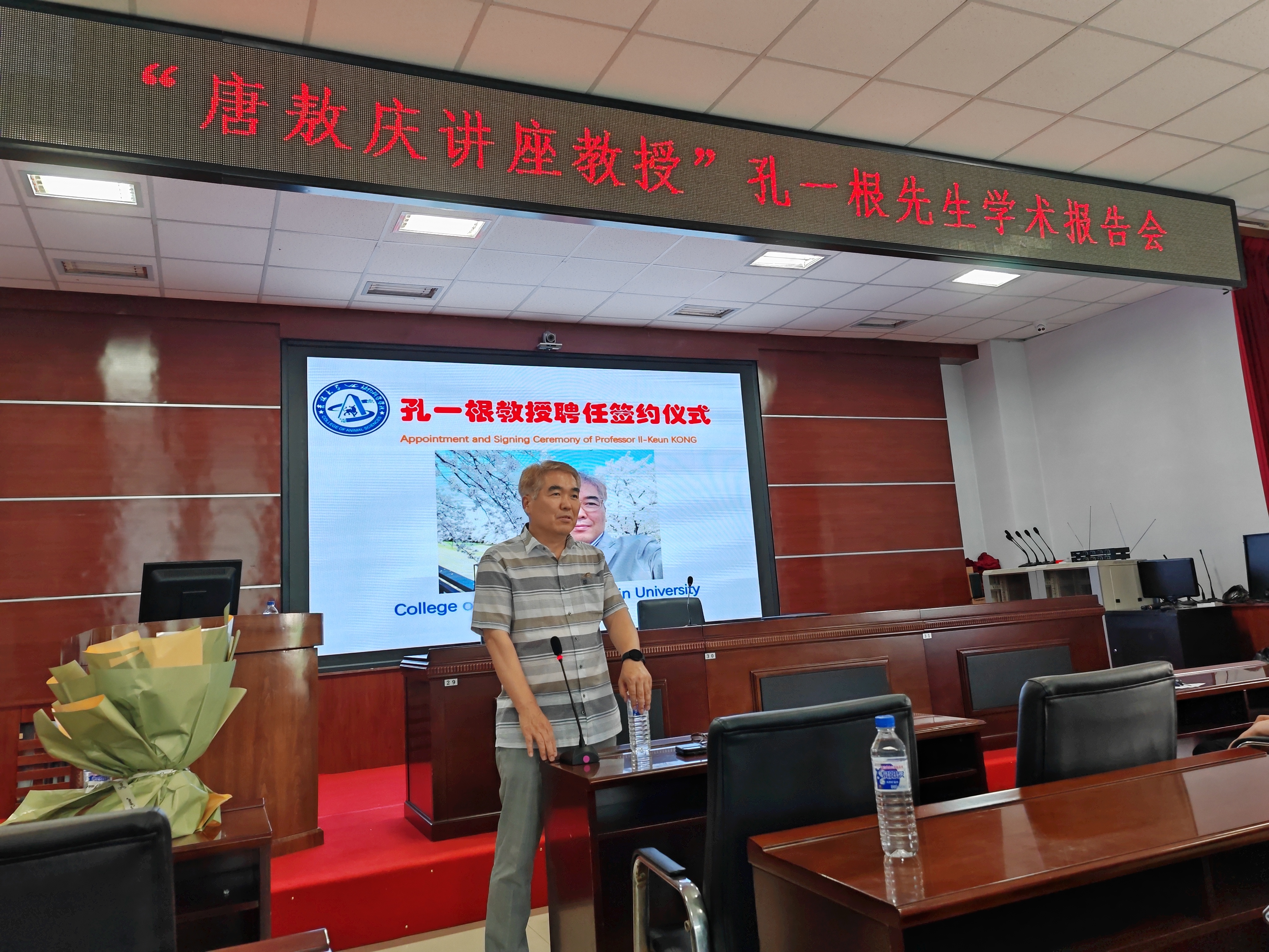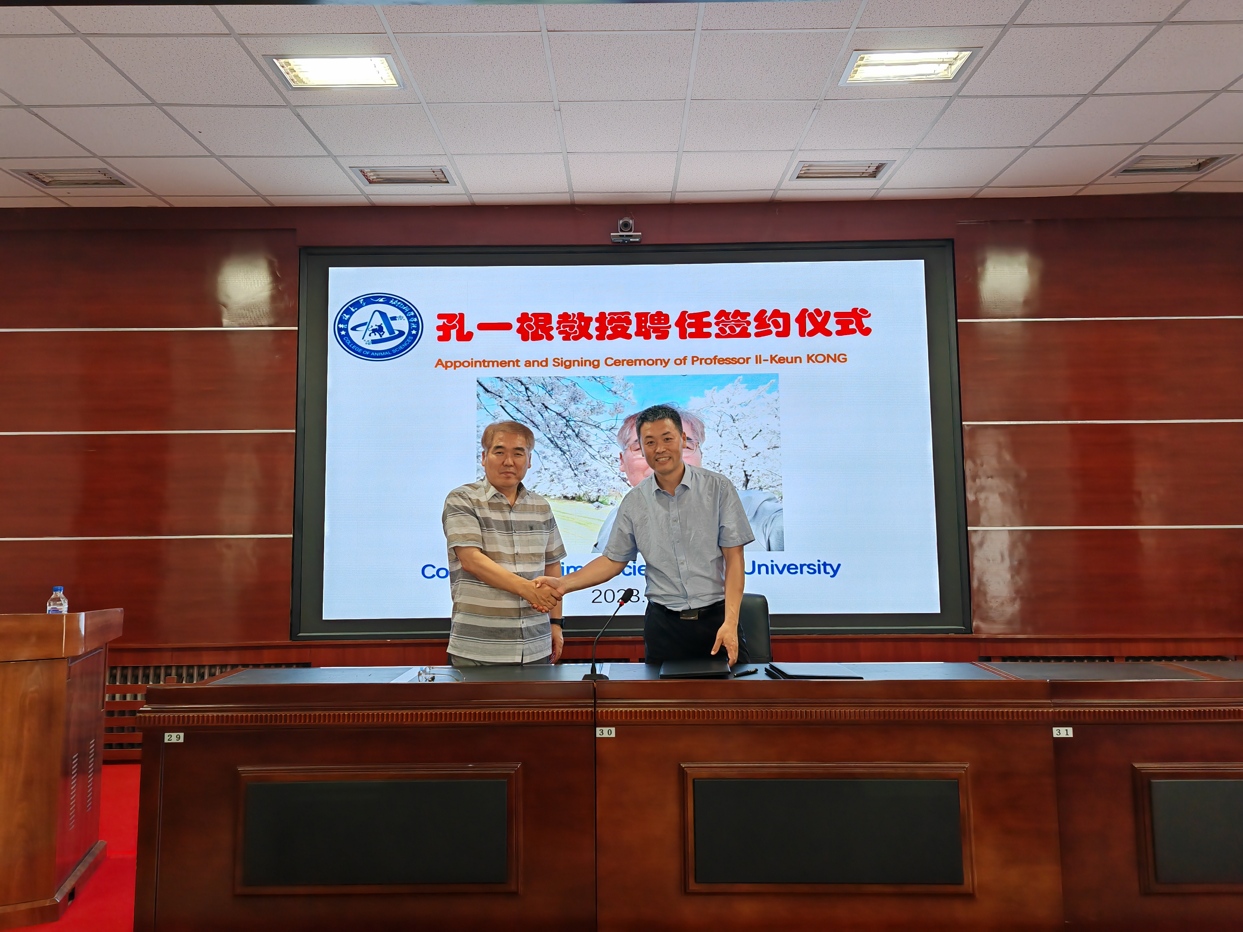 随后,孙博兴院长与孔一根教授签署了聘任协议,学生代表向孔一根教授献花并合影留念。