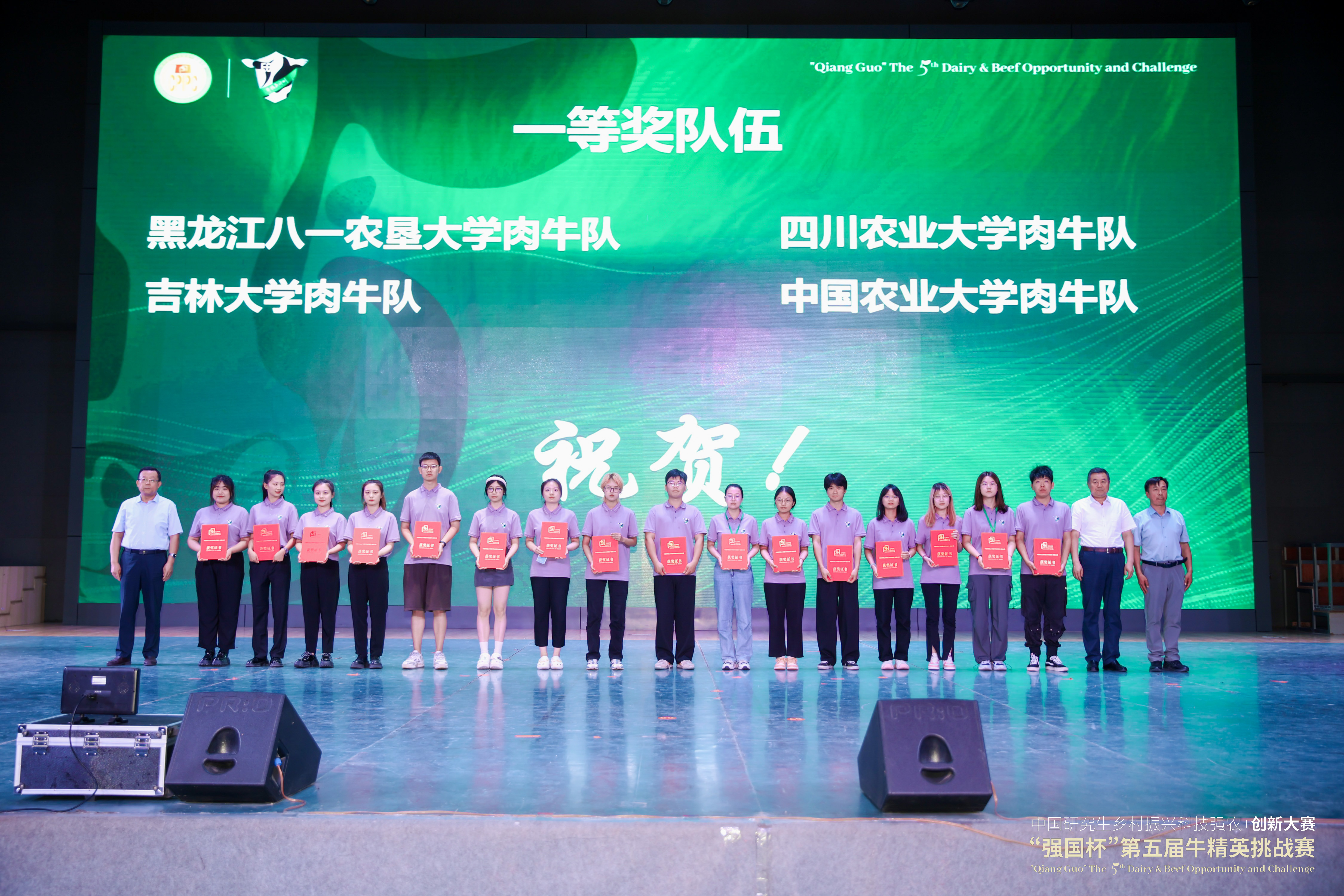8月7日,由教育部学位管理与研究生教育司指导,中国学位与研究生教育学会、中国科协青少年科技中心共同主办,中国农业大学、宁夏大学联合承办的中国研究生乡村振兴科技强农+创新大赛——“强国杯”第五届牛精英挑战赛在宁夏银川圆满落幕。由beat365英国官方网站研究生王浩琪、洪晓清、王悦颖和于梦组成的代表队荣获肉牛组团体一等奖,指导教师张明军教授、王鹏副教授荣获“优秀指导教师”称号。