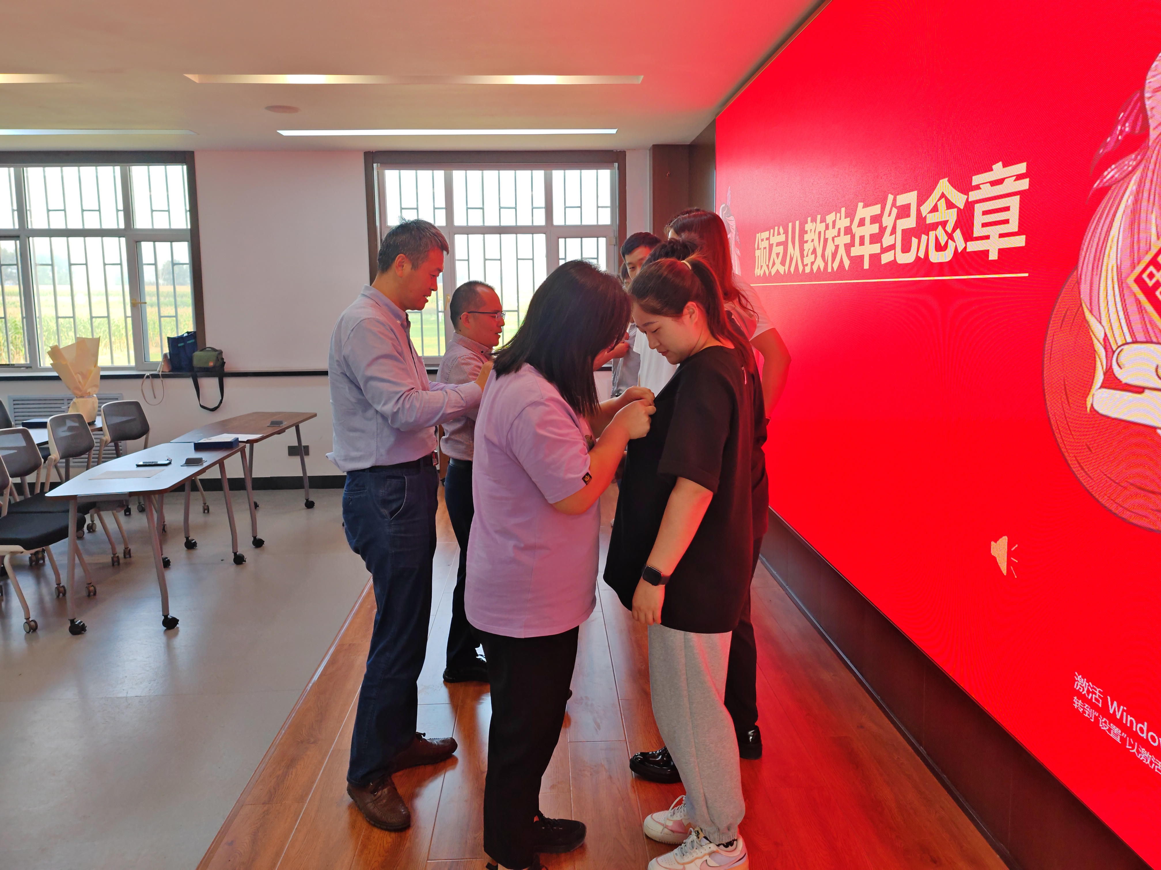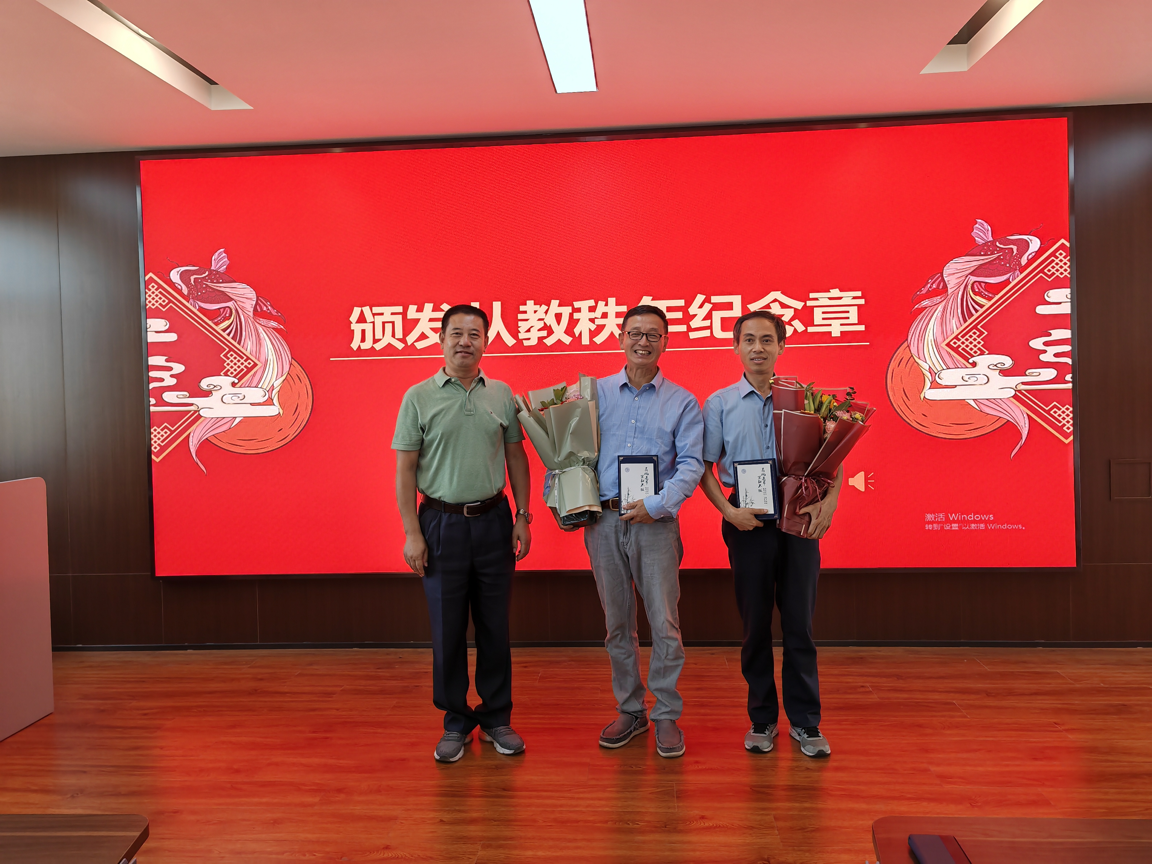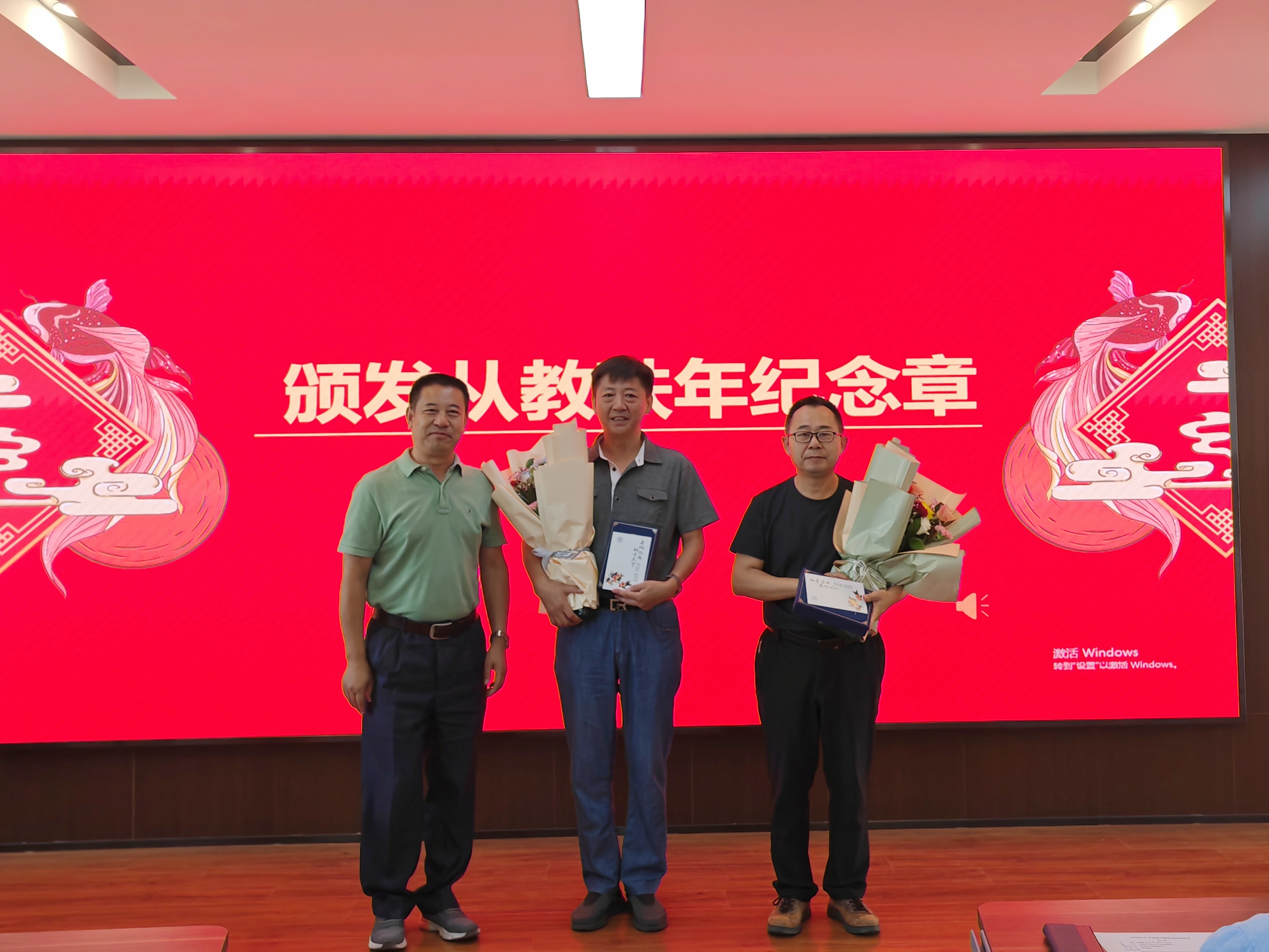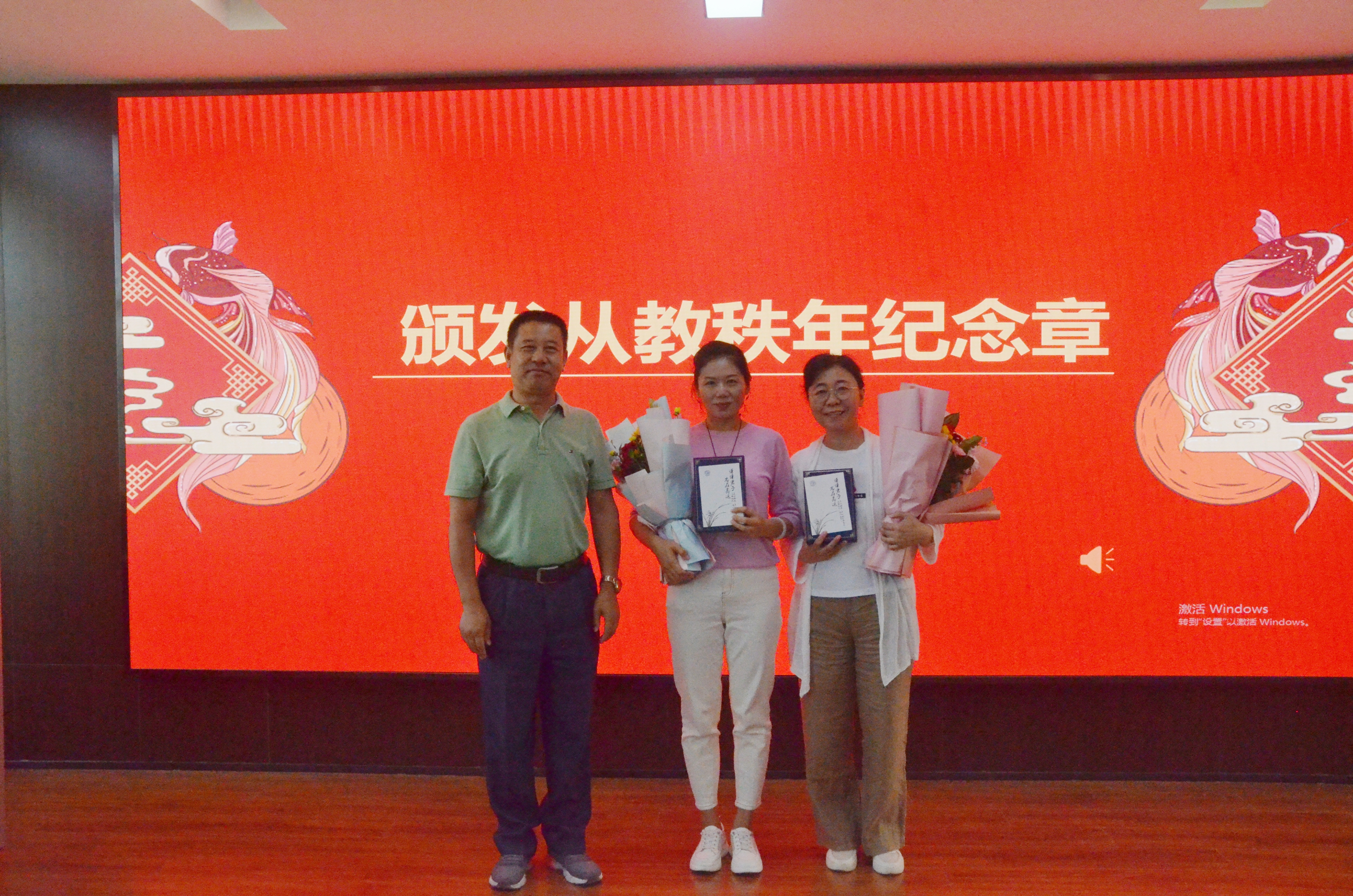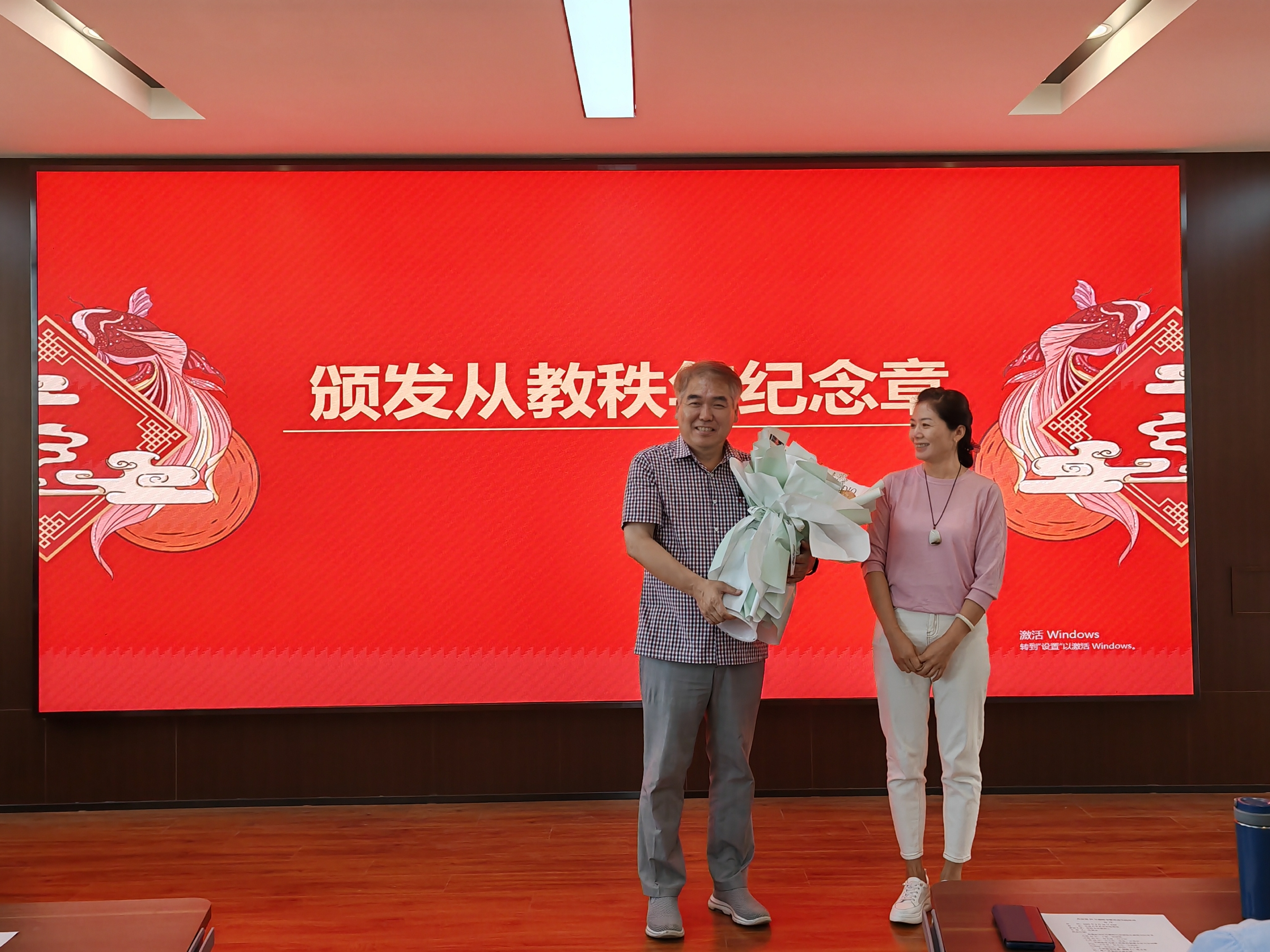 活动中,党委书记高福和为从教10年、20年和30年的教师代表颁发从教秩年纪念章和鲜花;教师代表丁瑜为唐敖庆讲座教授孔一根教授敬献鲜花;学院领导为学院2021年以来新入职教师佩戴beat365英国官方网站校徽,并组织全体新入职教师进行入职宣誓。