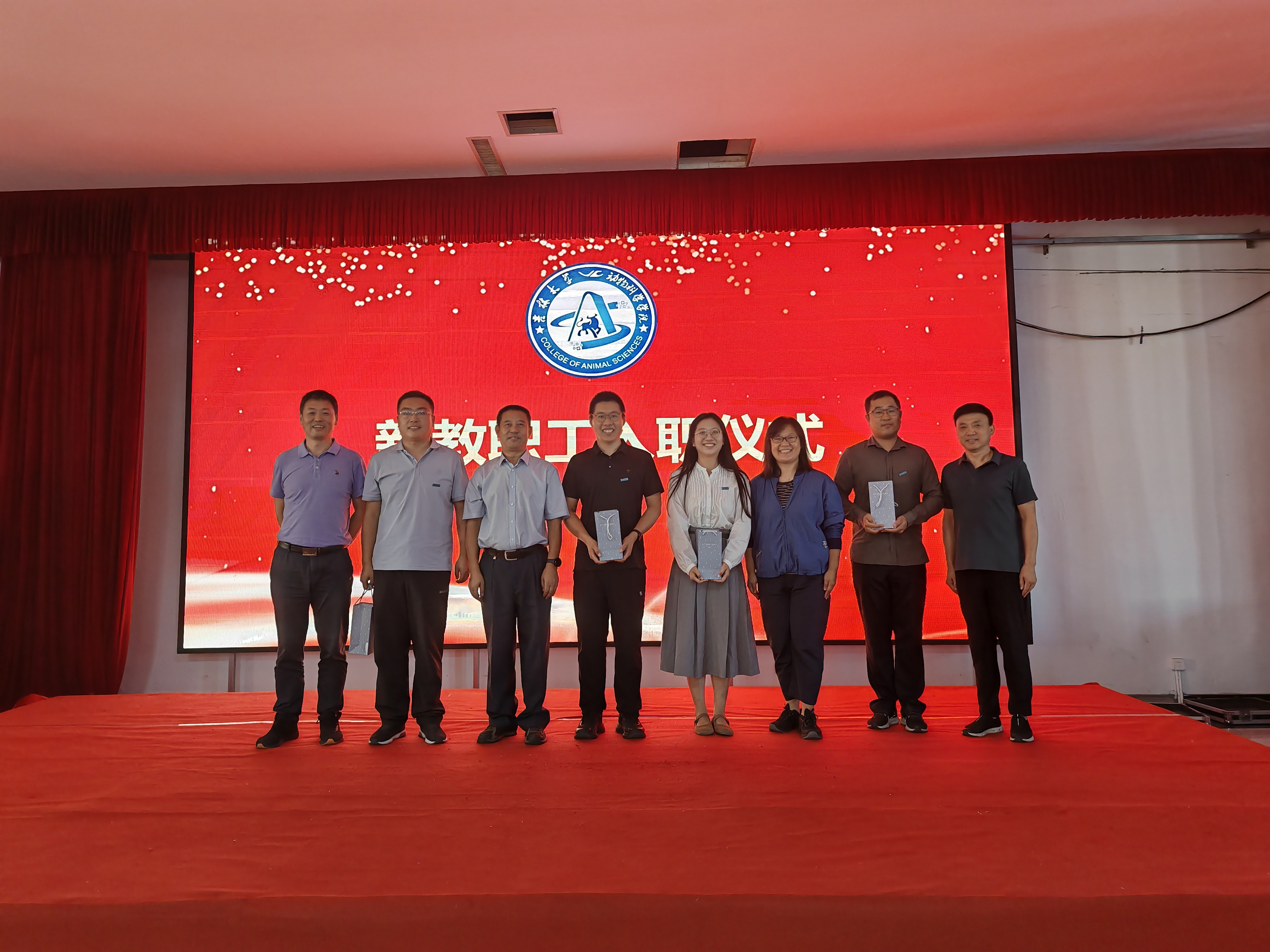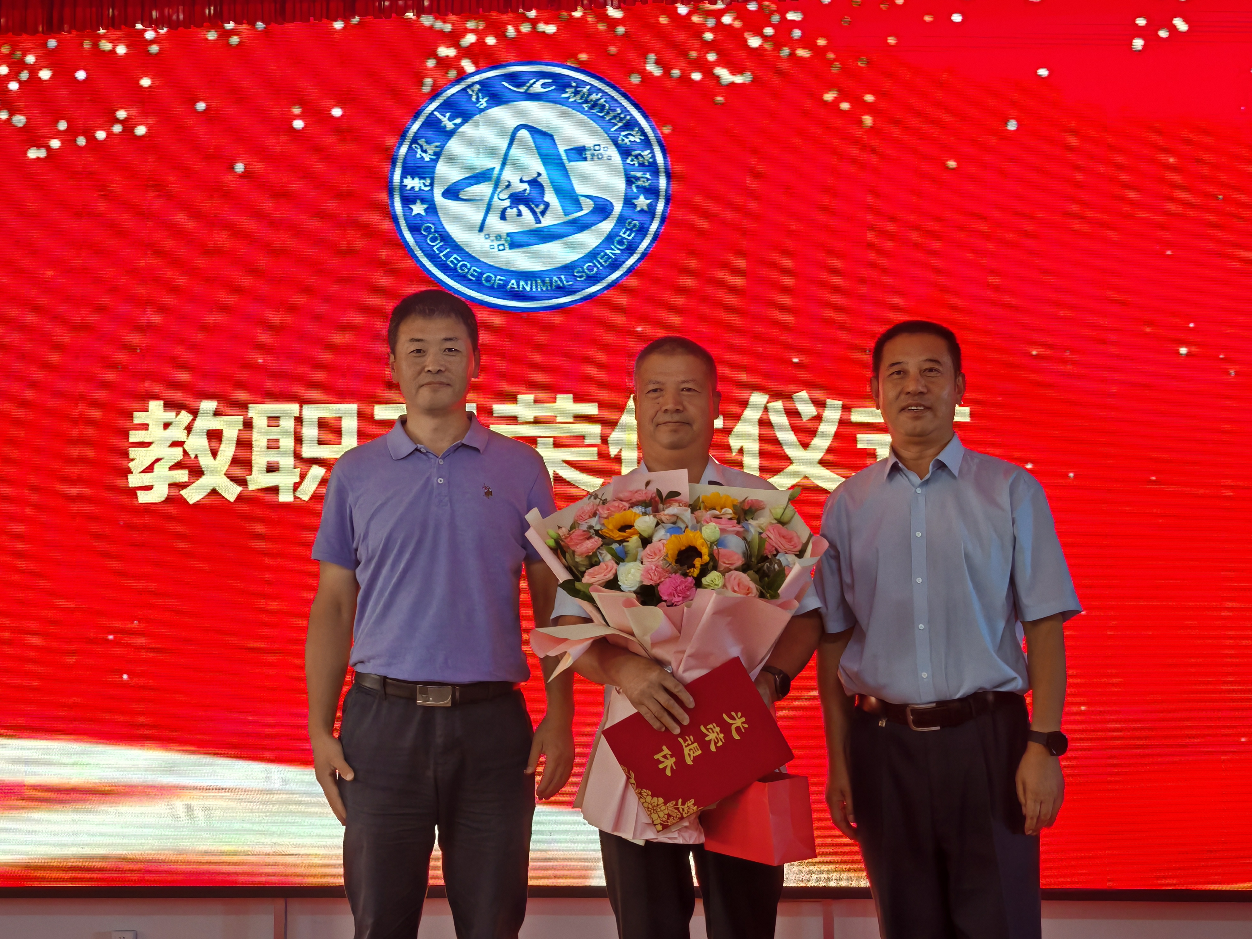 随后,举行新教职工入职仪式和教师荣休仪式。班子成员为2024年新入职教职工代表佩戴beat365英国官方网站校徽并发放学院纪念品,党委书记高福和为退休教师沈景林教授颁发荣休证书,青年教工代表杨琳为沈景林教授敬献鲜花并合影留念。沈景林教授在退休感言中回顾自己32年的从教经历,用3个感谢,3个不舍和4个祝愿倾诉了自己对学院、对师生和对畜牧学科的深切情感,在鲜花和掌声中正式告别讲台,迈向人生新的篇章。