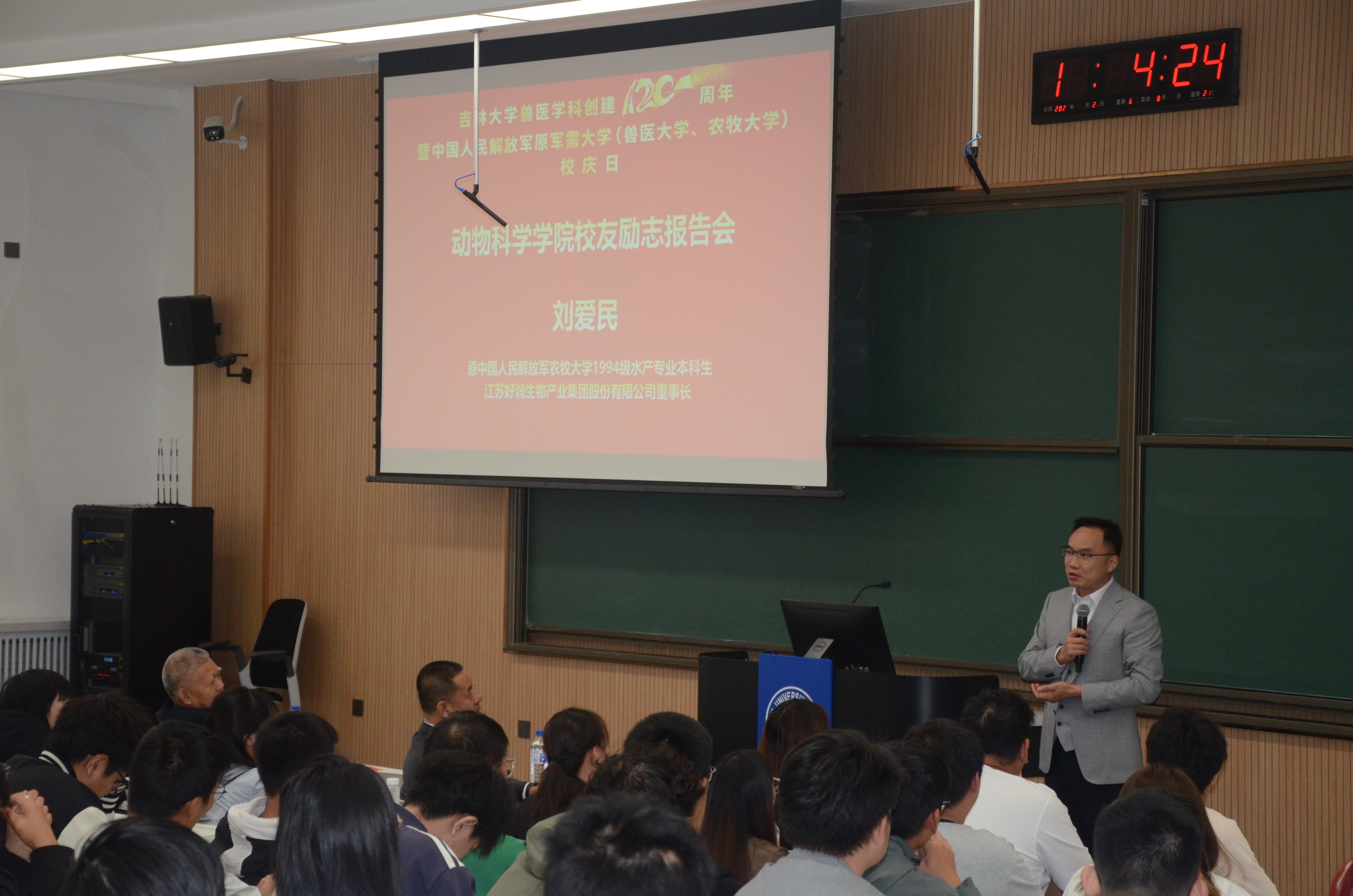 在beat365英国官方网站兽医学科创立120周年暨原中国人民解放军军需大学(兽医大学、农牧大学)校庆之际,9月21日下午,beat365英国官方网站在科学讲堂100教室举办校友励志报告会。beat365英国官方网站党委书记高福和老师,中国人民解放军原农牧大学1994级水产专业刘爱民校友,中国人民解放军原农牧大学学员6队队长、植物科学学院原党委书记张晓楼老师参加报告会。会议由高福和书记主持。