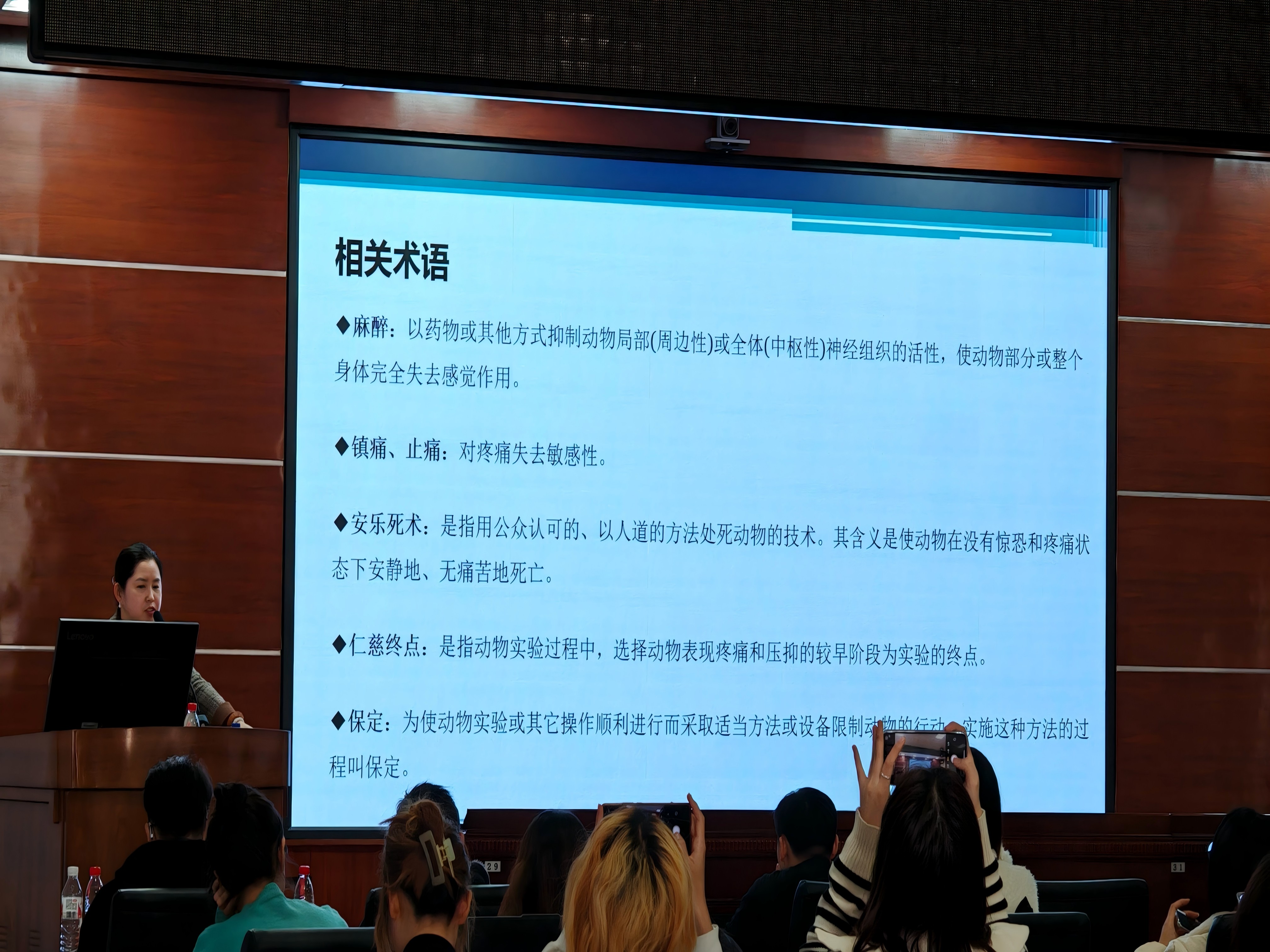 在实验动物设施准入培训环节,权福实老师为同学们作了开展动物实验前必备的《beat365英国官方网站实验动物福利伦理审查》申请的相关报告,对如何保障实验过程中动物福利以及申请实验动物福利伦理审查的程序、相关术语、填写注意事项作出了详细说明。