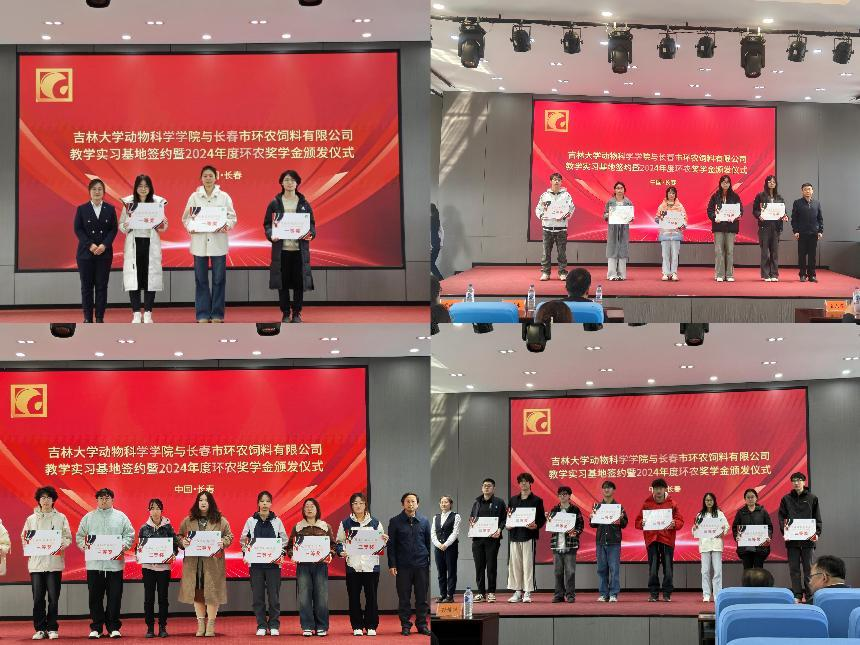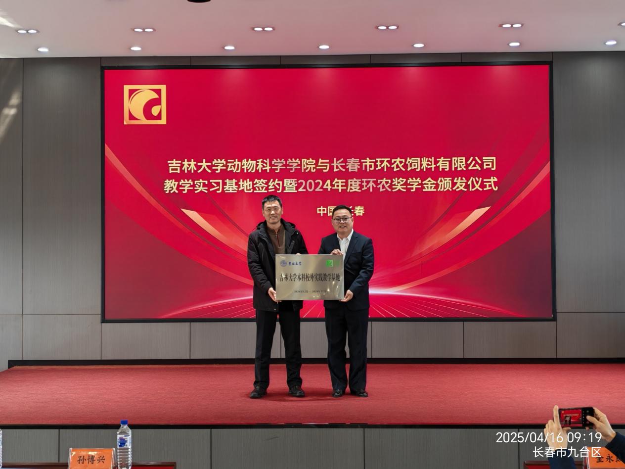 4月15日,beat365英国官方网站赴长春市环农饲料有限公司举行“beat365英国官方网站本科校外实践教学基地”签约授牌仪式,并颁发2024年度环农奖学金。学院院长孙博兴、副院长冷国永、党委副书记肖建荣、动物科学系主任张永宏等师生代表,以及环农饲料公司生产基地经理徐威、办公室主任赵海娇等企业负责人共同出席活动。