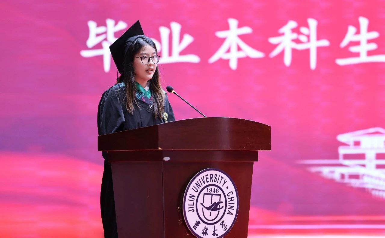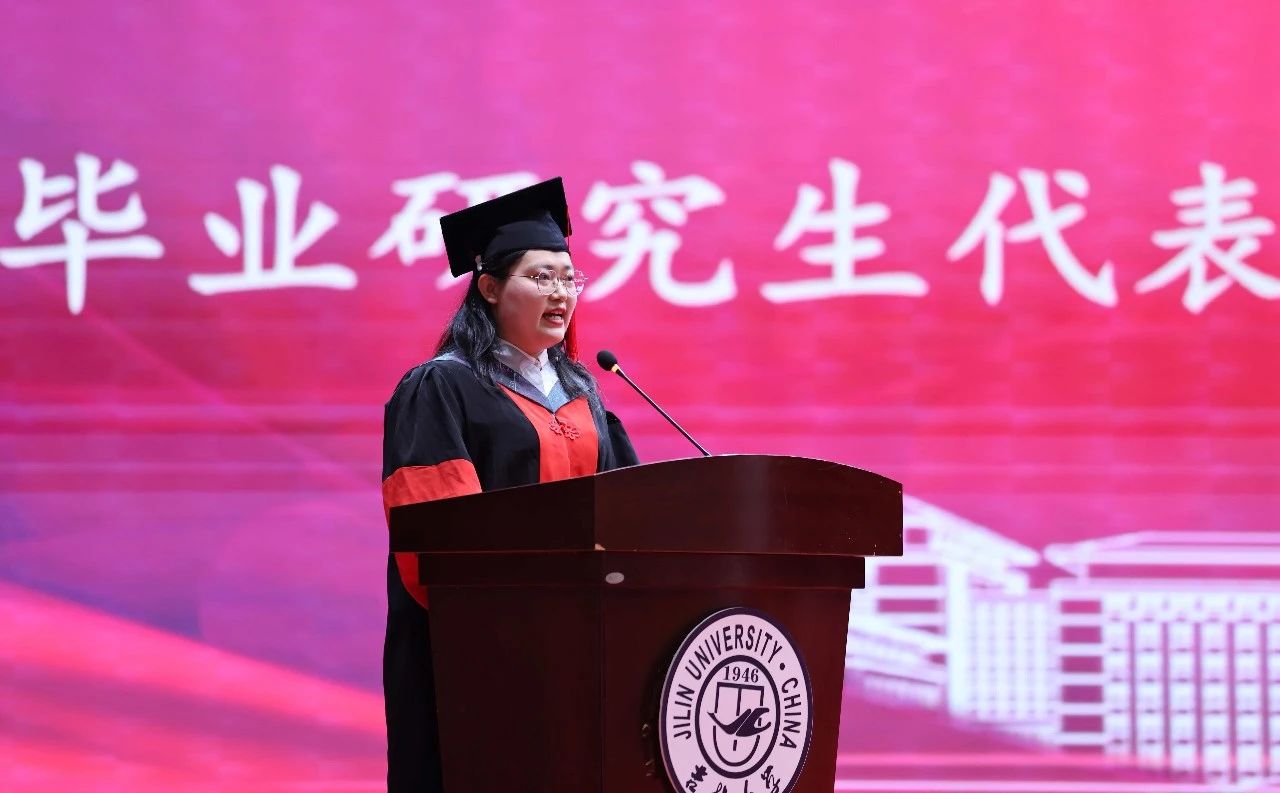 beat365英国官方网站十佳博士研究生、2022级生物学专业博士生李金泽,2021级动物科学专业本科生唐奕菲,分别代表研究生、本科生发表了毕业感言。李金泽同学分享了她在科研道路上获得的成绩,并表示自己将继续在求真求是的科研道路上增长才干,饱含热忱,以知识应对挑战,与时代同频共振。唐奕菲同学则回顾了在校期间的学习和生活经历,表达了对母校和老师的感激之情,并将带着这份感恩与热爱,在人生新征程上奋力奔跑,不负韶华,不负期待。