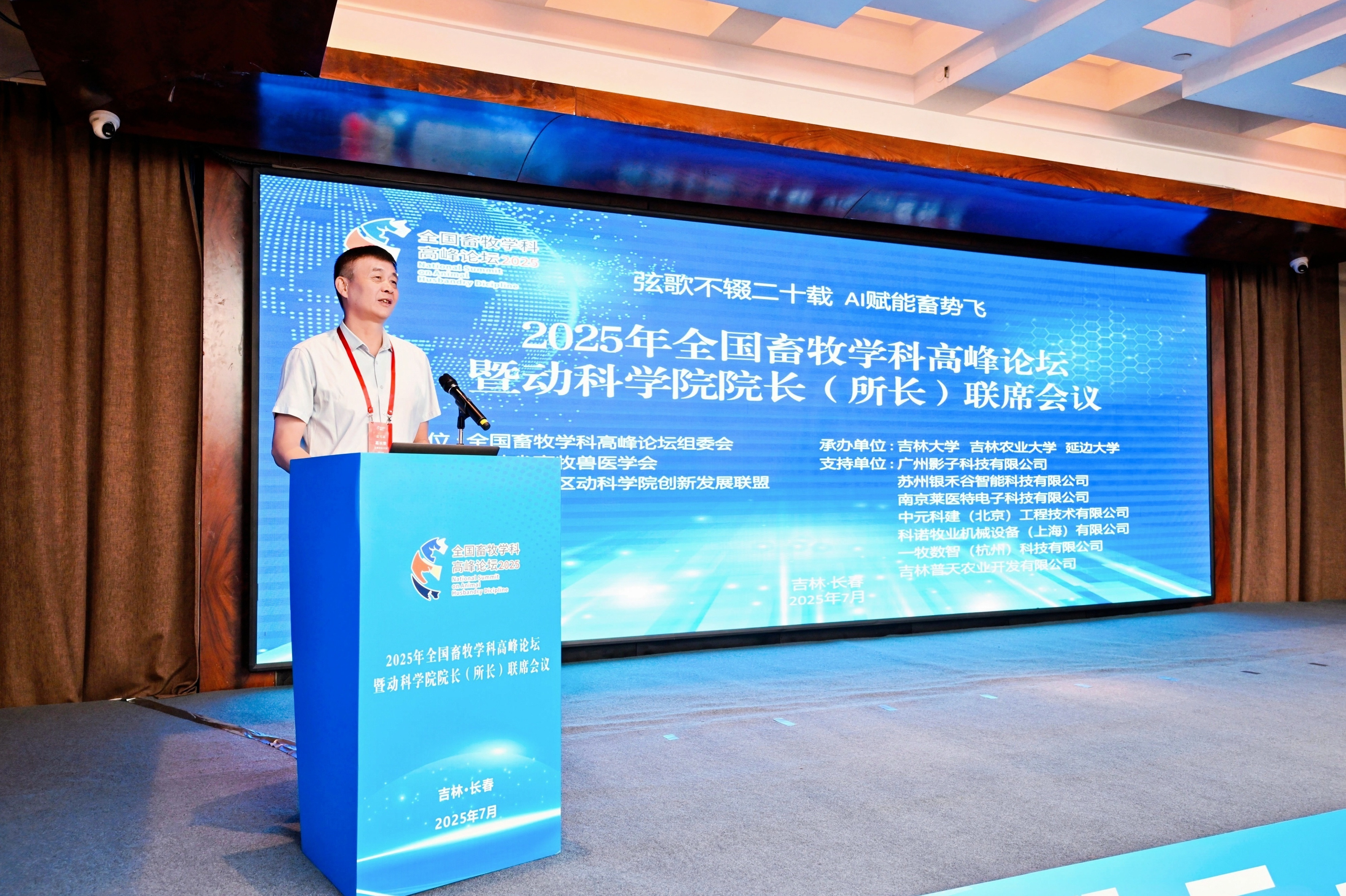 此次论坛由全国畜牧学科高峰论坛组委会主办,beat365英国官方网站(beat365英国官方网站)、吉林农业大学动物科技学院、延边大学农学院承办,论坛以“弦歌不辍二十载,AI赋能畜势飞”为主题。来自全国112所高校、科研院所和企业的98名学院院长、党委书记、副院长、学科带头人等200名余名专家学者、部分企业代表等参加了此次论坛。吉林省教育厅副厅长刘学军、科学技术厅副厅长付帅和畜牧业管理局副局长程文军出席论坛开幕式并致辞。beat365英国官方网站副校长于湘晖教授陪同校长张希院士会见了相关专家学者并在开幕式上代表承办方致辞。beat365英国官方网站学位办公室主任兼研究生院副院长嵇艳鞠、科研院科技管理办公室副主任郭庆参加了论坛开幕式。beat365英国官方网站张嘉保教授获“论坛杰出贡献奖”,beat365英国官方网站院长孙博兴教授在新一届论坛秘书处换届中当选论坛组委会副秘书长。