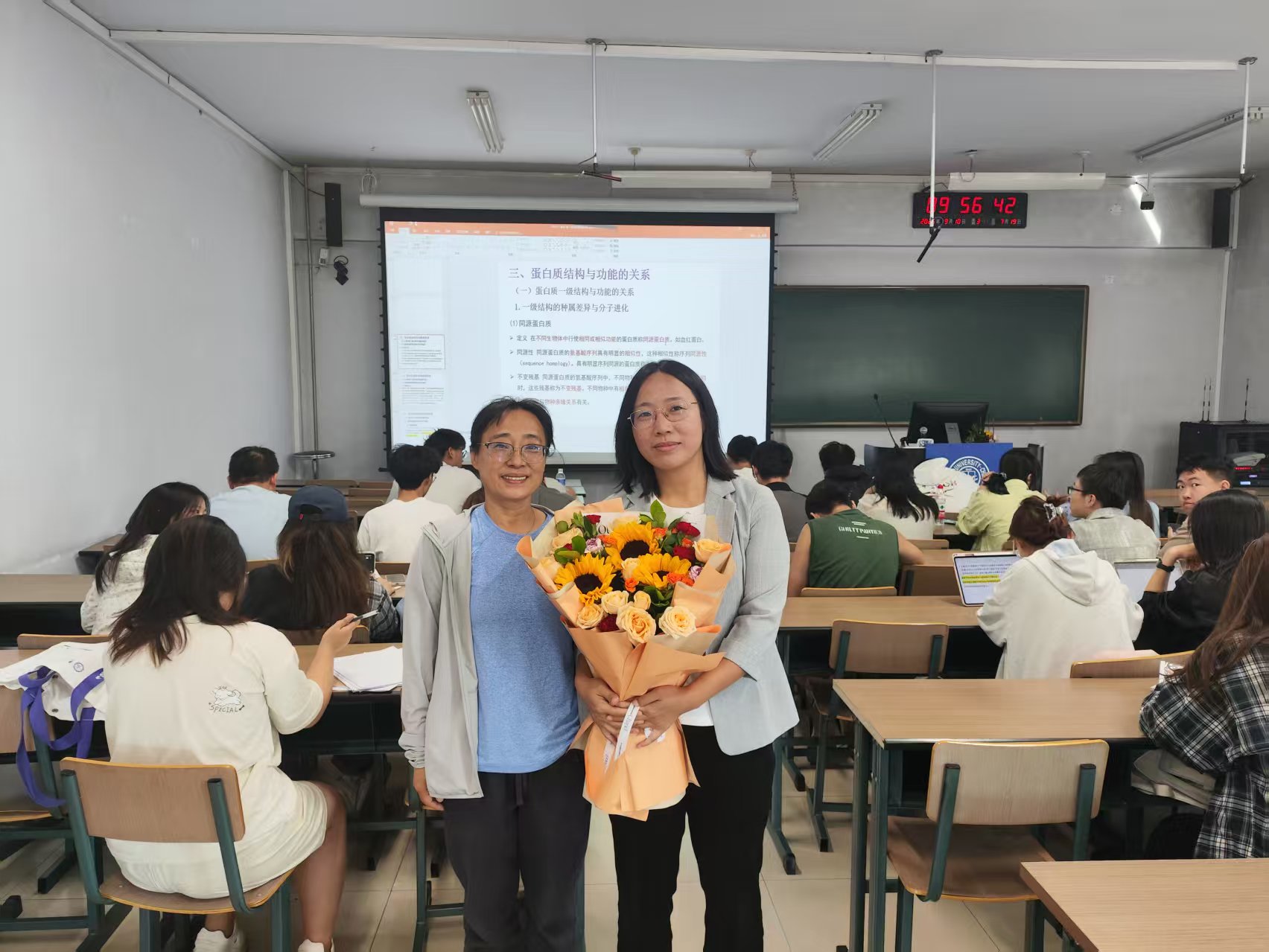 学院党委书记徐仁元、副院长袁宝、冷国永、李纯锦、逄大欣,党委副书记兼副院长、纪委书记肖建荣、分别来到和平校区科学讲堂和动物科技国家级示范实验教学中心楼等14间教室,向一线教师致以教师节的诚挚慰问和崇高敬意,感谢广大一线教师为学院学生培养作出的贡献,并送上鲜花和节日祝福。