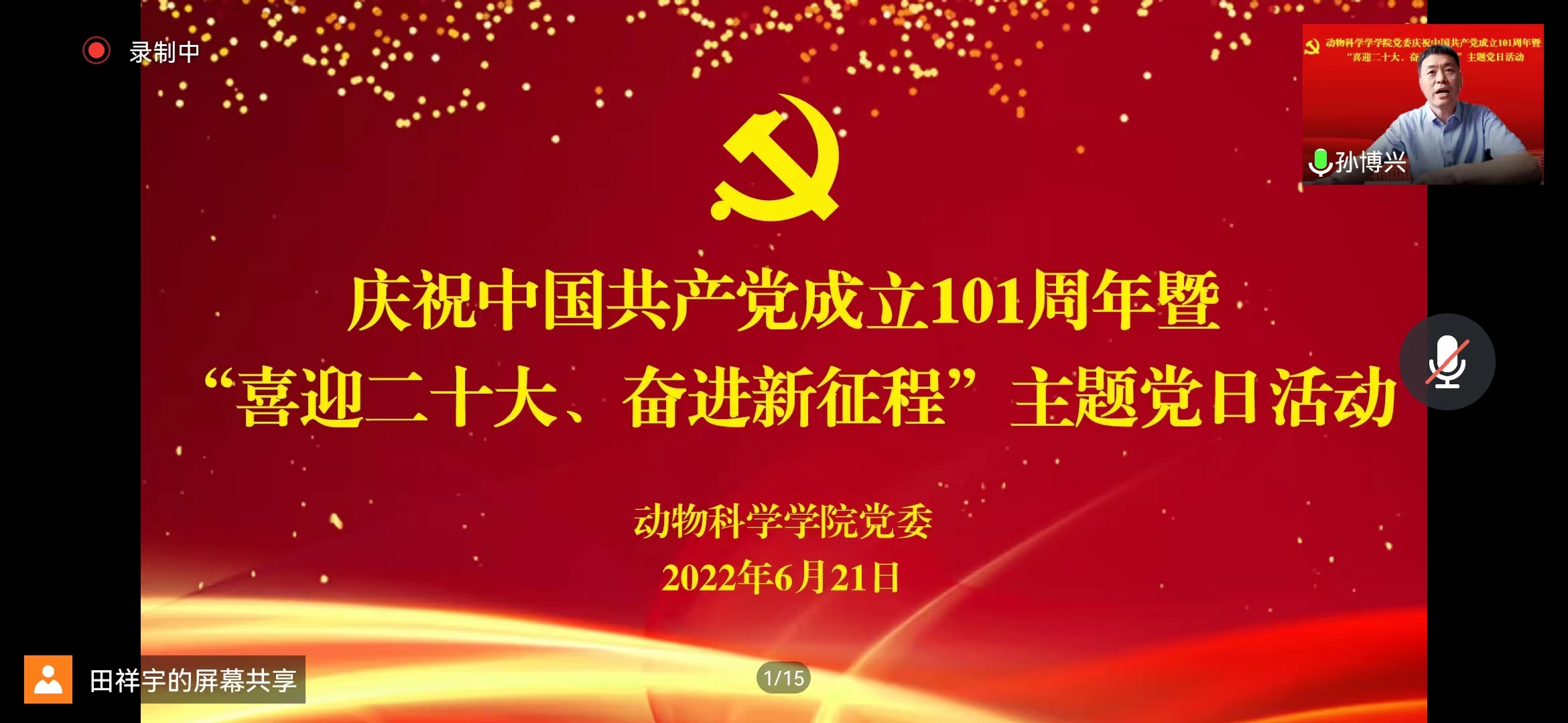 为庆祝中国共产党成立101周年,迎接党的二十大胜利召开,6月21日上午,beat365英国官方网站党委通过腾讯会议平台线上开展庆祝中国共产党成立101周年暨“喜迎二十大、奋进新征程”主题党日活动。活动由院长孙博兴同志主持,学院全体师生党员线上参会。