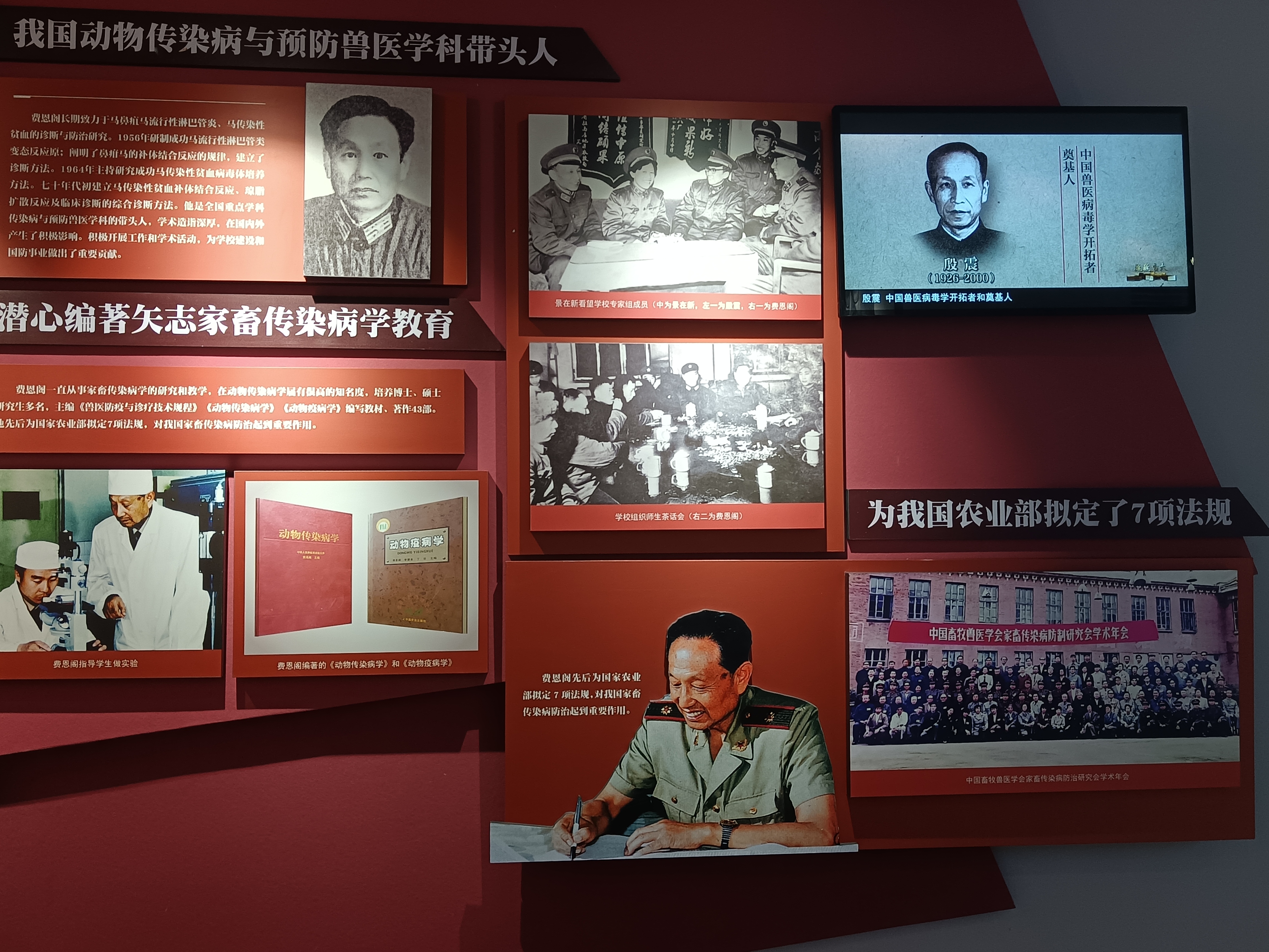 beat365英国官方网站历史名人纪念馆分为序厅、“六校肇始 为国而生”“高瞻远瞩 强基铸魂”“与国同行 风雨耕耘”以及“薪火弦歌 赓续传承”多个展区,多角度、详实地向同学们展现了林枫、饶斌、江一真、李四光、陈先舟、任抟九等64位拓业先贤的卓越功绩。在这里,动科学子认识到我国第一代微生物学家和细菌学家杨敷海先生,我国动物传染病与预防兽医学科带头人费恩阁先生以及我国著名兽医病理解剖学家郑兆荣先生等名人伟士。