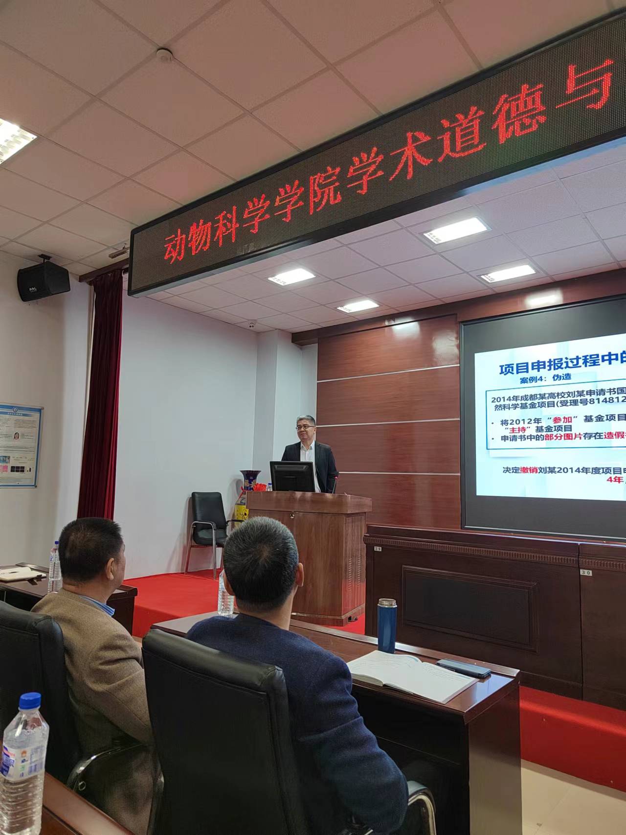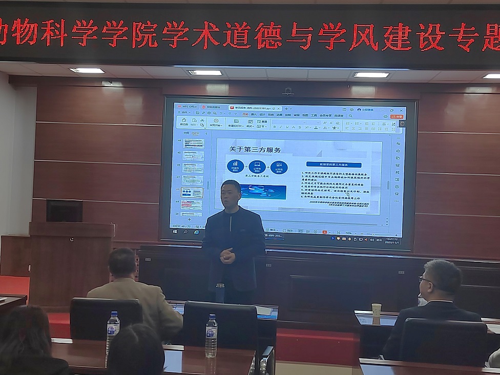报告中,王大明副主任首先通过典型案例指出了科研诚信的重要性,并详细阐述了项目申报过程中应注意的学风问题、学术不端的定义和范围,摘要介绍了学校及上级预防和处理学术不端行为的办法、科研失信行为调查处理规则,并向与会人员介绍了学校学风建设近期相关工作以及现阶段学风建设工作中科研人员应注意的事项。王老师希望学院不断加强对科研人员学术道德和学风建设的经常性教育,希望广大科研人员在科研工作中划清“红线”、兜住“底线”,“脚踏实地、严谨求实”,将学术道德观念贯穿于科研工作始终。