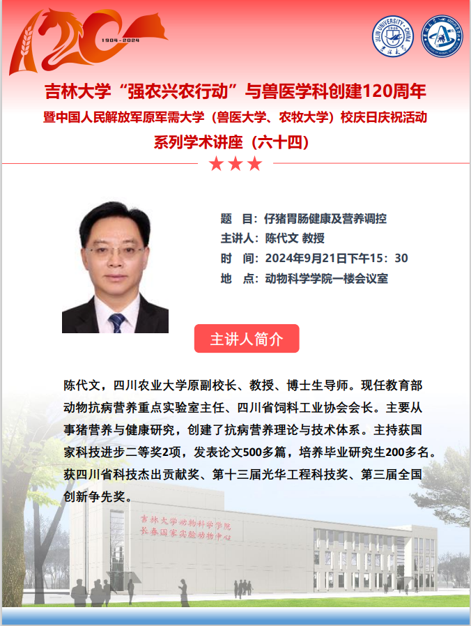 上一条:beat365英国官方网站“强农兴农行动”与兽医学科创建120周年暨中国人民解放军原军需大学(兽医大学、农牧大学)校庆日庆祝活动系列学术讲座(六十六、六十七、六十八) 下一条:beat365英国官方网站“强农兴农行动”与兽医学科创建120周年暨中国人民解放军原军需大学(兽医大学、农牧大学)校庆日庆祝活动系列学术讲座(五十七)