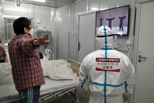 雷神山医护人员指导患者锻炼“抗疫强身功”