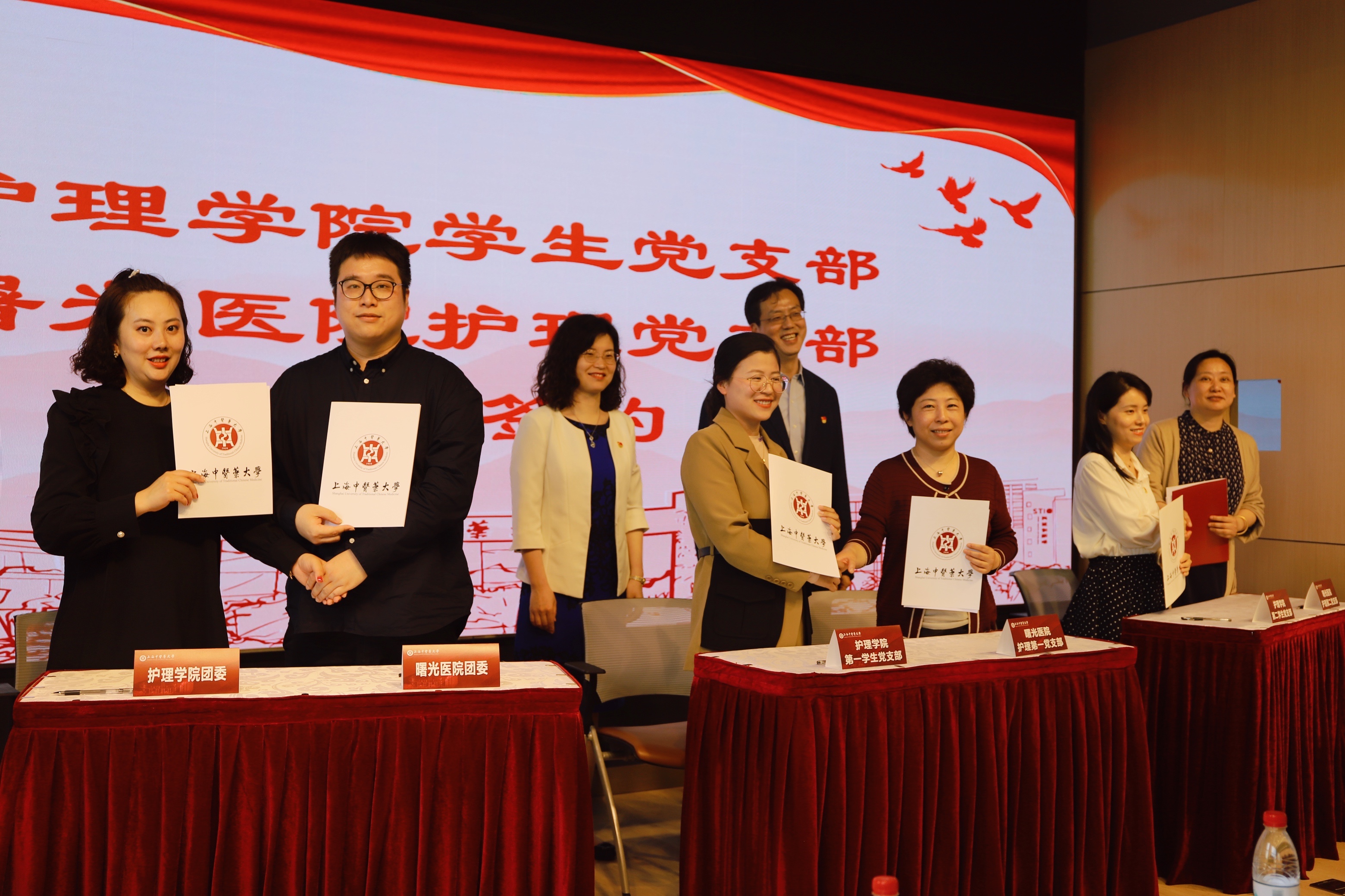 4月28日下午,为纪念五四运动102周年,bat365官网护理学院团委、第一学生党支部、第二学生党支部,附属曙光医院团委、护理第一党支部、护理第二党支部共同组织开展“党团联建共育人,立德铸魂齐发展”主题联建活动并现场进行了签约仪式。护理学院党总支书记史美育、护理学院党总支副书记张瑛参会,bat365中文官方网站团委书记吴平、曙光医院党委副书记姚政出席。